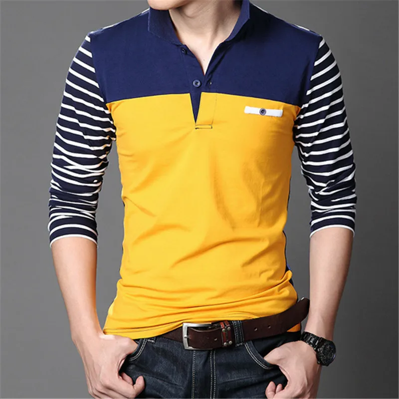 Мужская футболка с длинным рукавом BROWON, хлопковая эластичная облегающая футболка в полоску с v-образным вырезом, весна-осень 2019