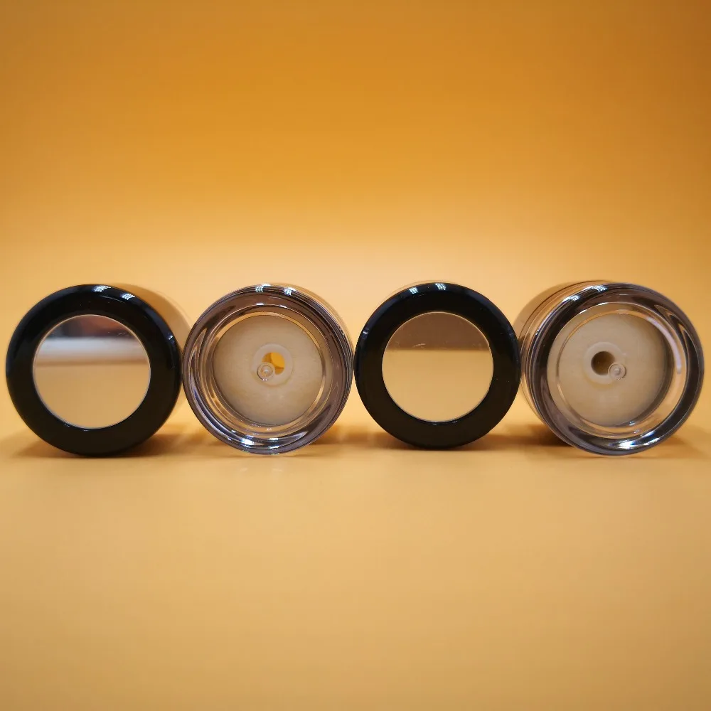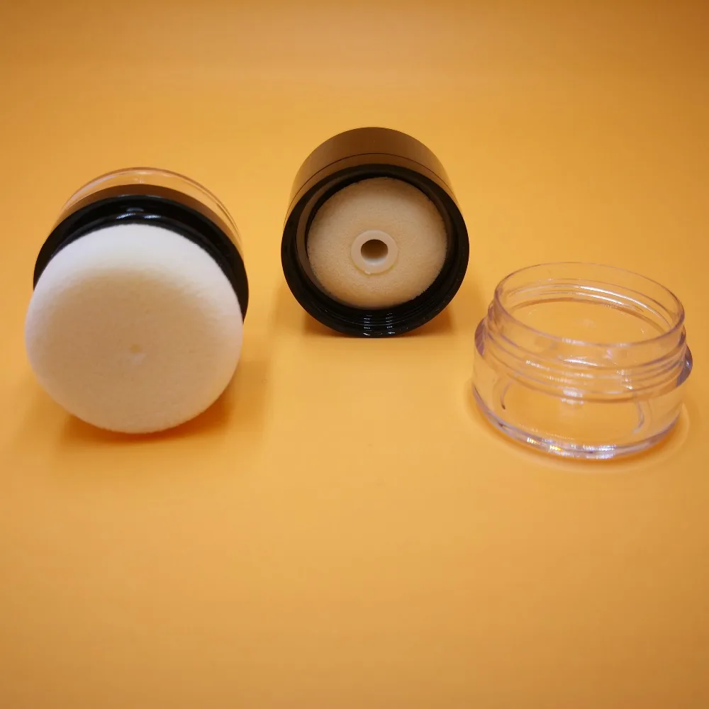 Пустые банки для пудры с зеркальной пуховкой, черная крышка, самодельный компактный косметический упаковочный контейнер для макияжа, бесплатная доставка
