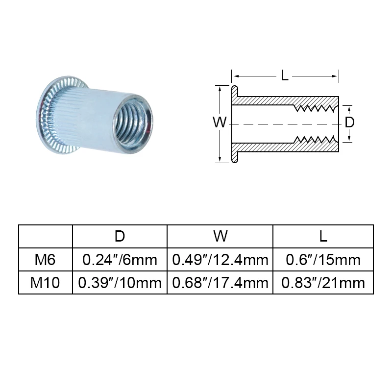 20 шт. M3 M4 M5 M6 M8 M10 M12 из углеродистой стали Rivnut, плоская головка, заклепки с резьбой вставка, гайка с заклепками