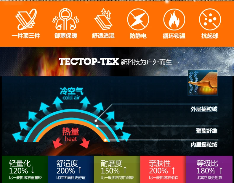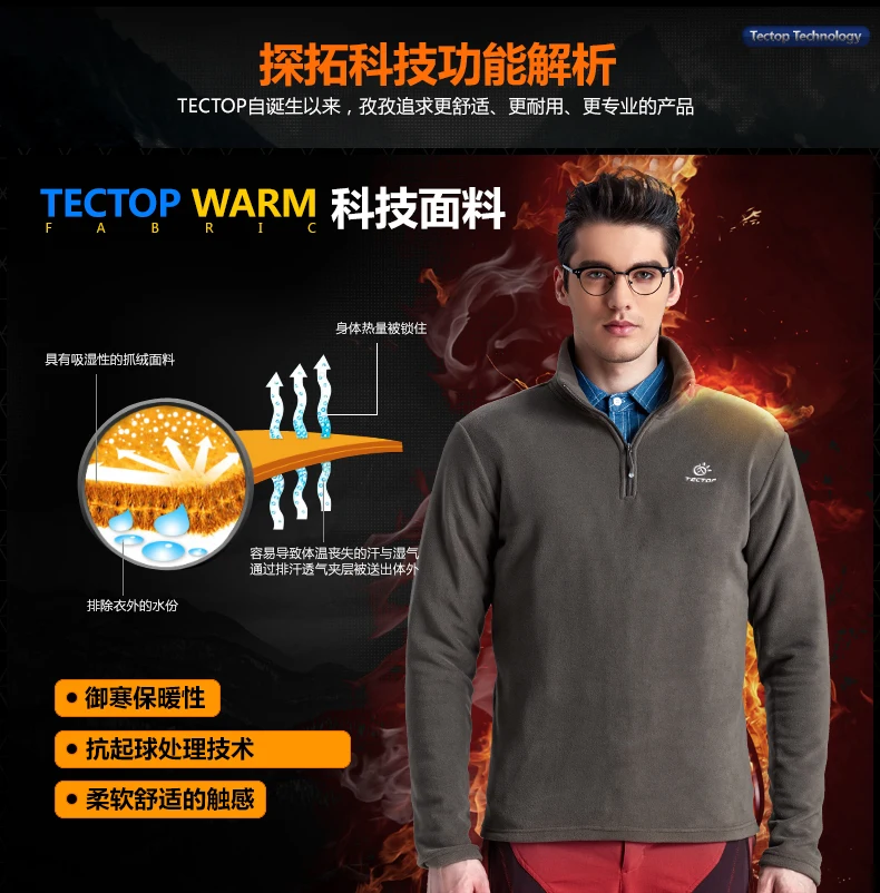 Теплая Флисовая Куртка Tectop для мужчин и женщин, уличный ветрозащитный Теплый пуловер на молнии для отдыха на открытом воздухе, походов, Осень-зима