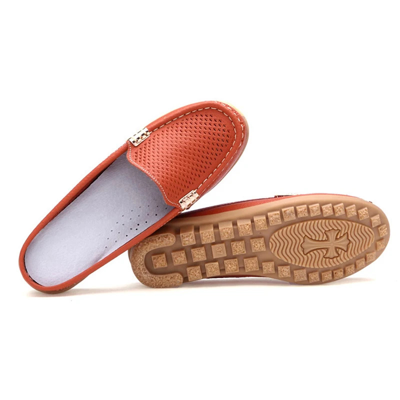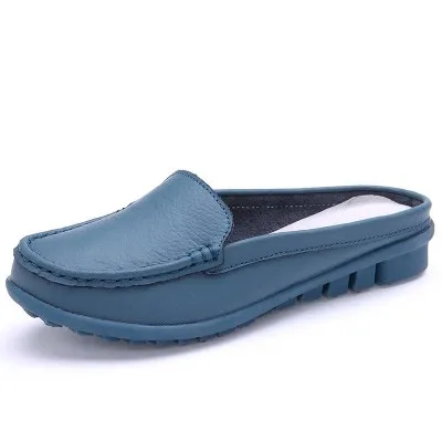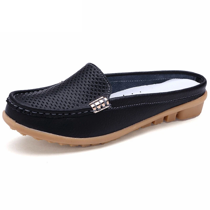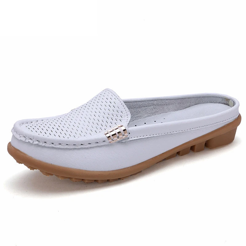 Женские летние шлепанцы, натуральная кожа, плоская подошва, без застежки