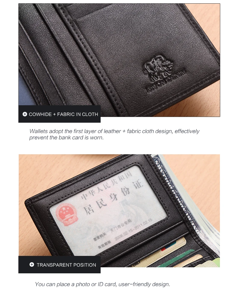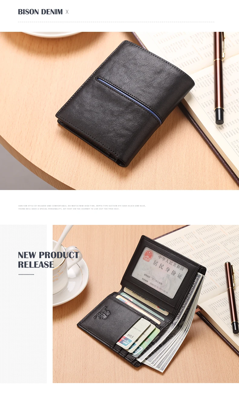 Бренд BISON DENIM, натуральная кожа, первый слой, короткий кошелек, деловой классический кошелек, мужской кошелек, держатель для карт, повседневный кошелек, N4437-2