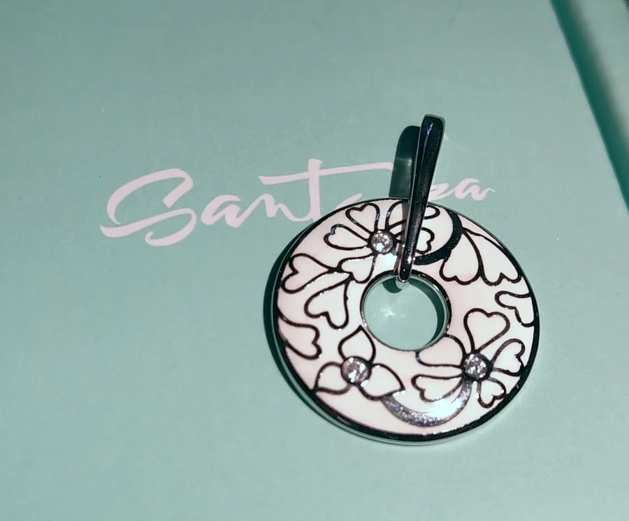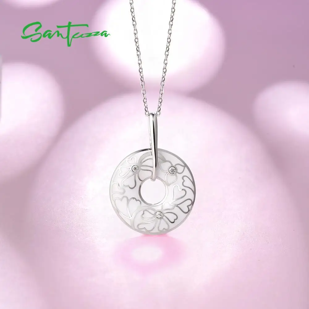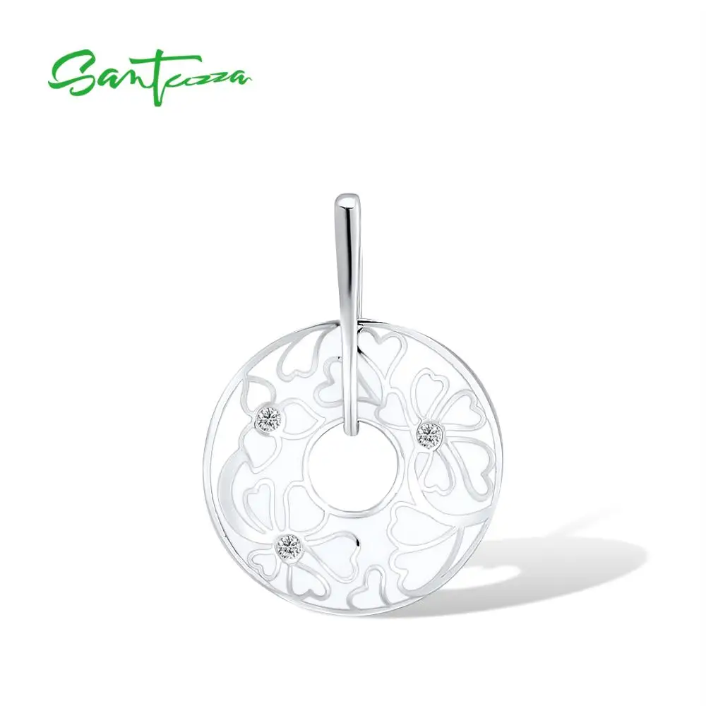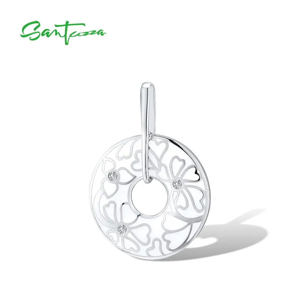 Женский серебряный кулон SANTUZZA, подвеска из серебра 925 пробы с белым цветком, с эмалью, ручная работа