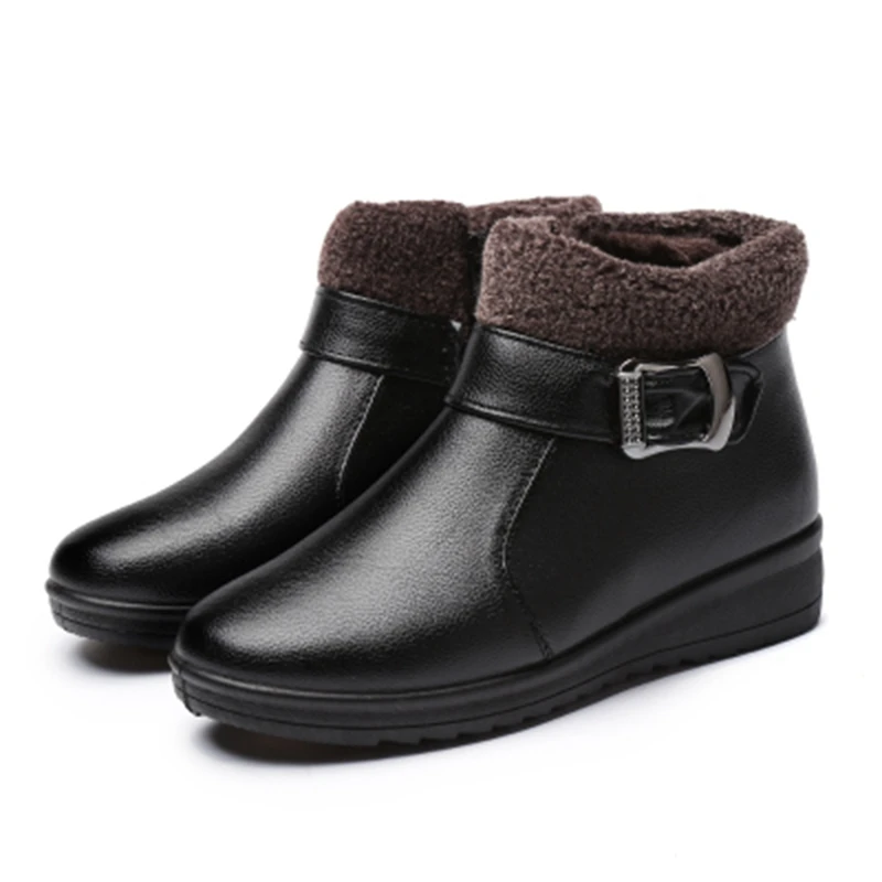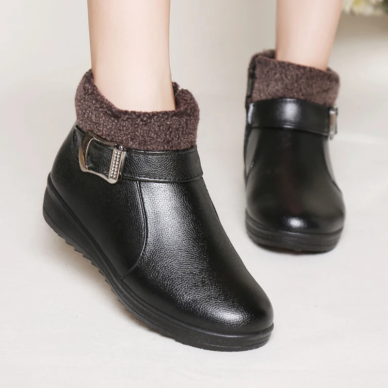 ZZPOHEзимние женские ботильоны; Модные повседневные теплые удобные ботинки из искусственной кожи для мам; Хлопковая обувь без застежки для бабушки