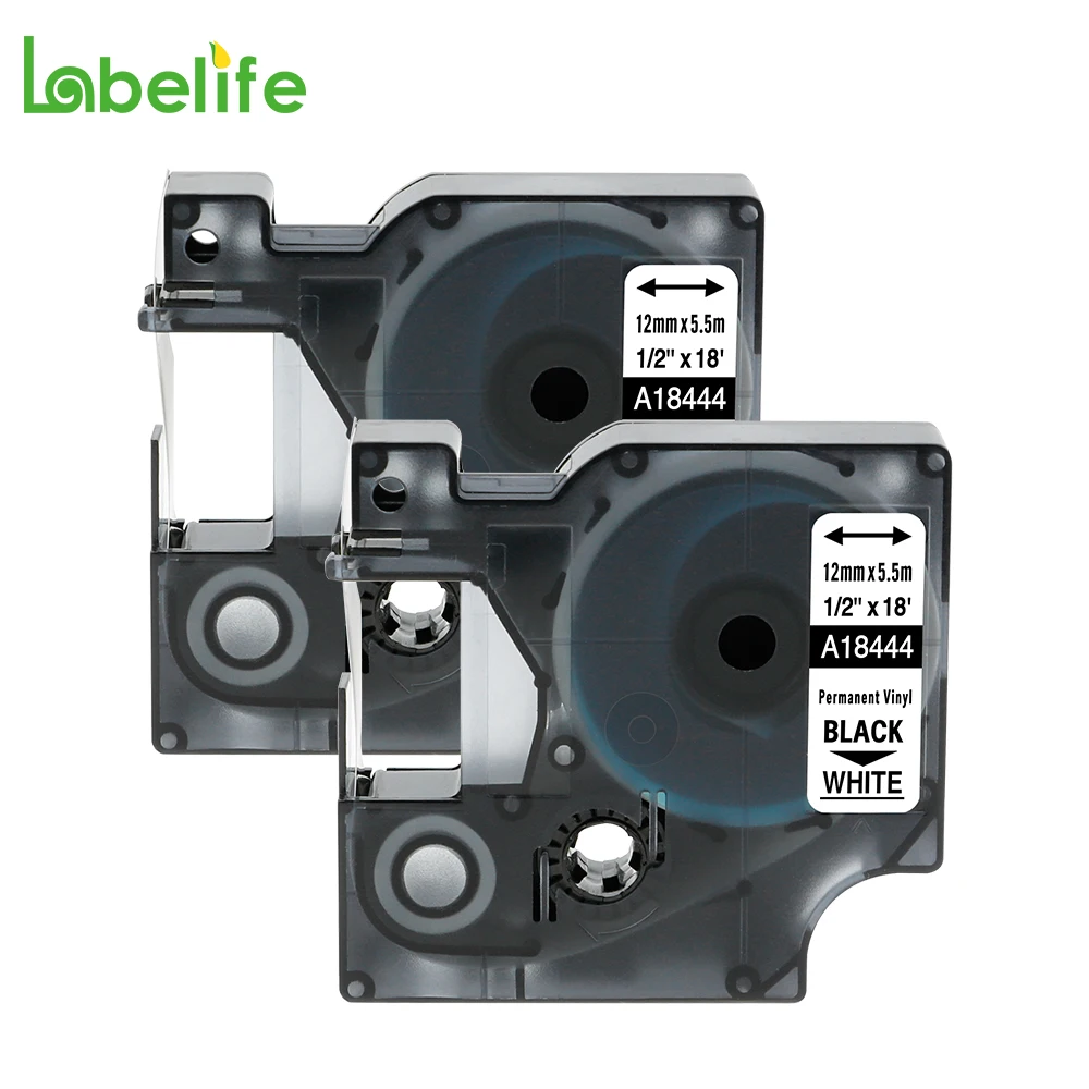 2 упаковки 18444, черныебелые виниловые этикетки для DYMO Rhino IND, Рино 12 мм лента для маркировки, промышленный картридж, винил для принтера этикеток