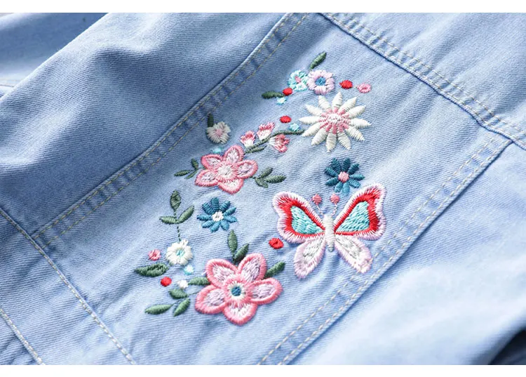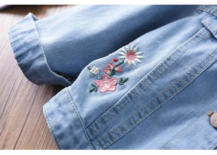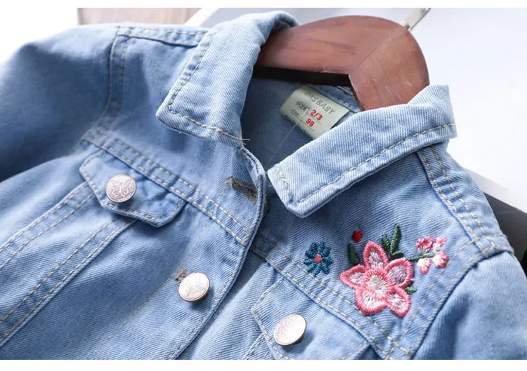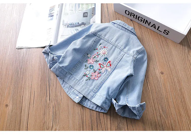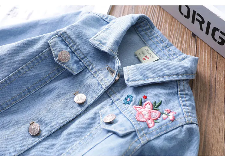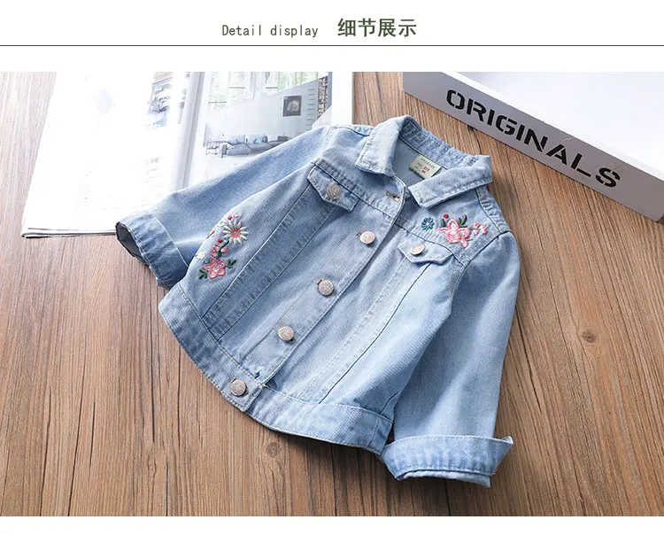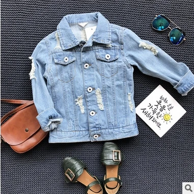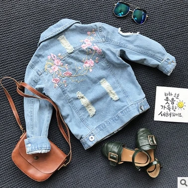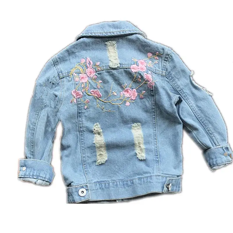 Джинсовая куртка с дырками для маленьких девочек; Новинка 2021 года; Детское пальто с вышитыми цветами; Детская джинсовая одежда