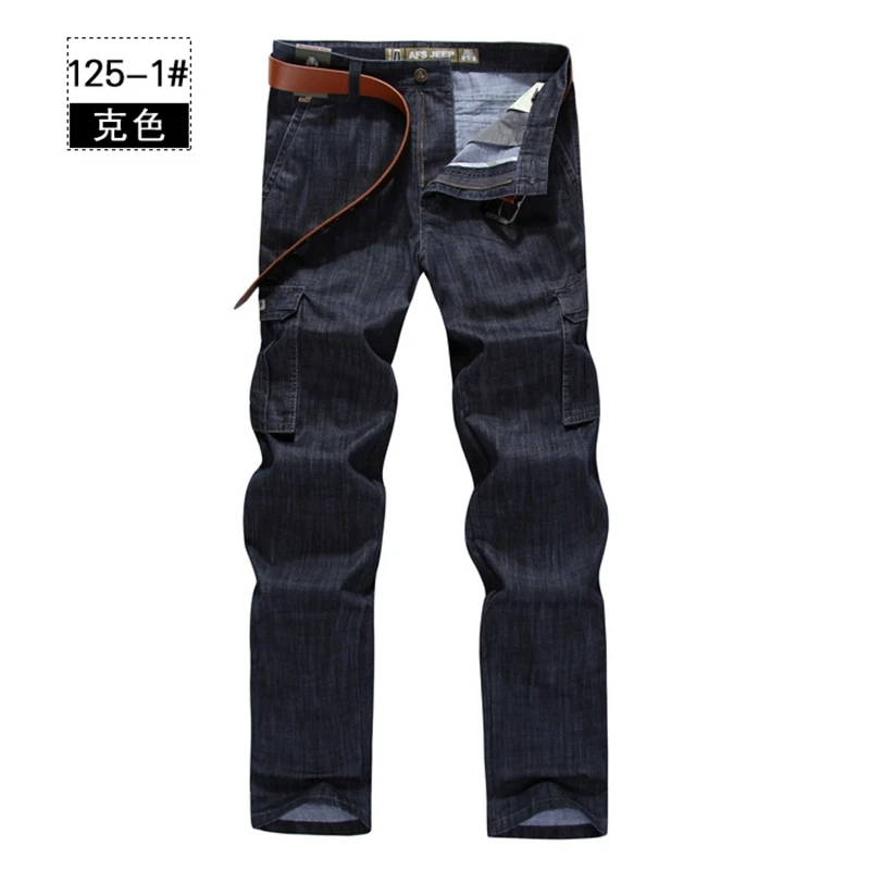 Джинсы мужские, вареные, классические, свободные, с несколькими карманами, в стиле милитари, одежда больших размеров, 38, 40, 42, V7A1J012