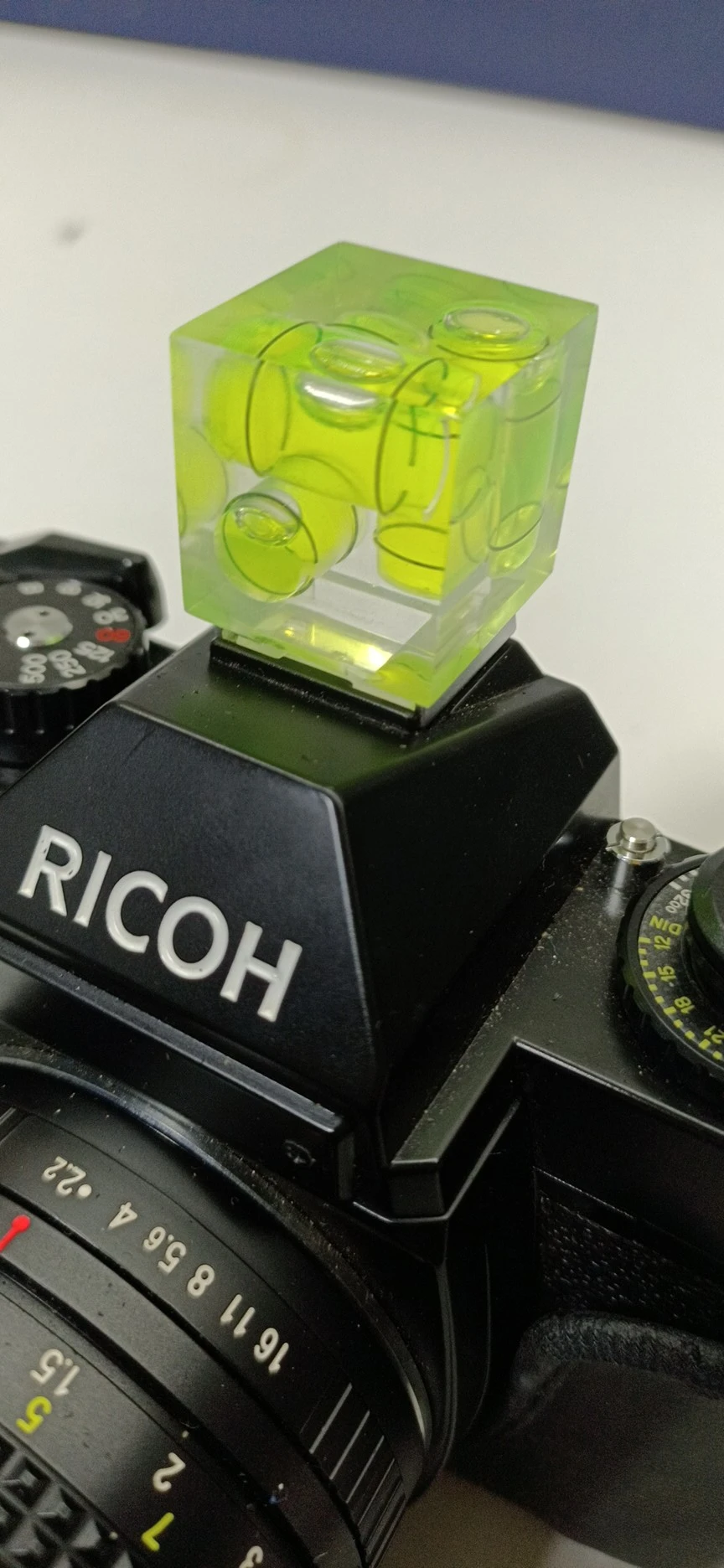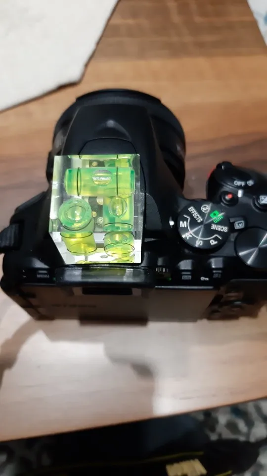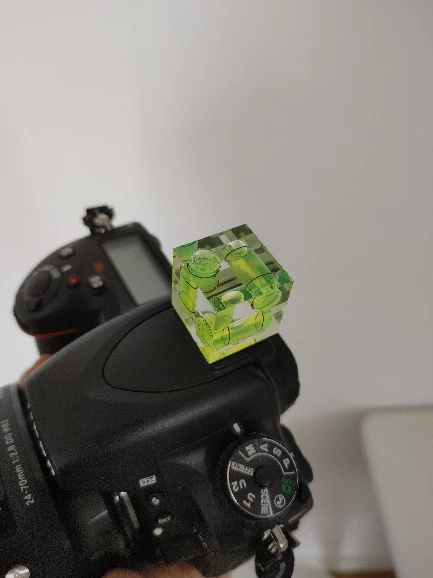 Маленький уровень пузыря 3 оси для захвата аксессуара камеры, очень практичный, чтобы избежать фотографий, которые висят :) Уровень линий немного мест для размера пузыря, поэтому он не очень точный, но он очень ограничивает эффект ожидания в любом случае