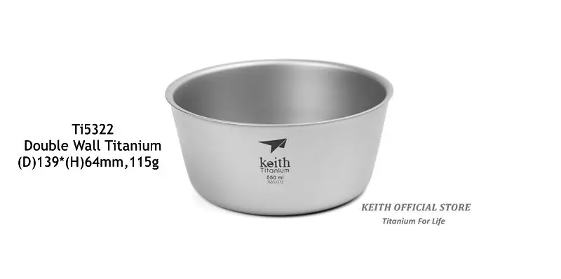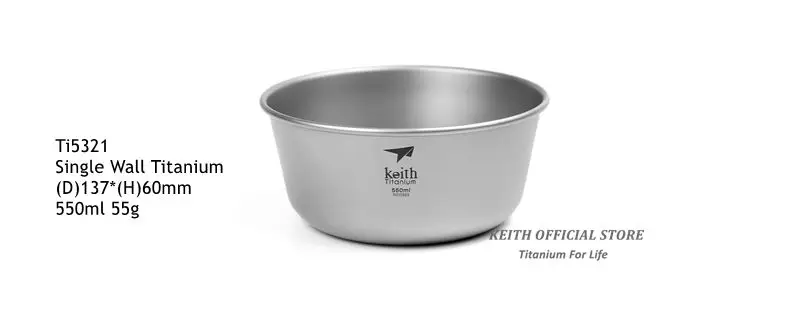 Ультралегкая титановая миска Keith, 550 мл, столовая посуда для кемпинга и путешествий, миски из чистого титана с одной стенкой и двойной стенкой на выбор
