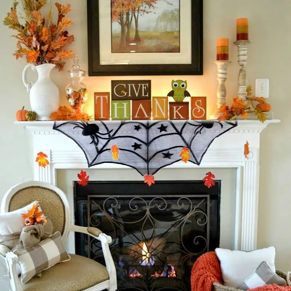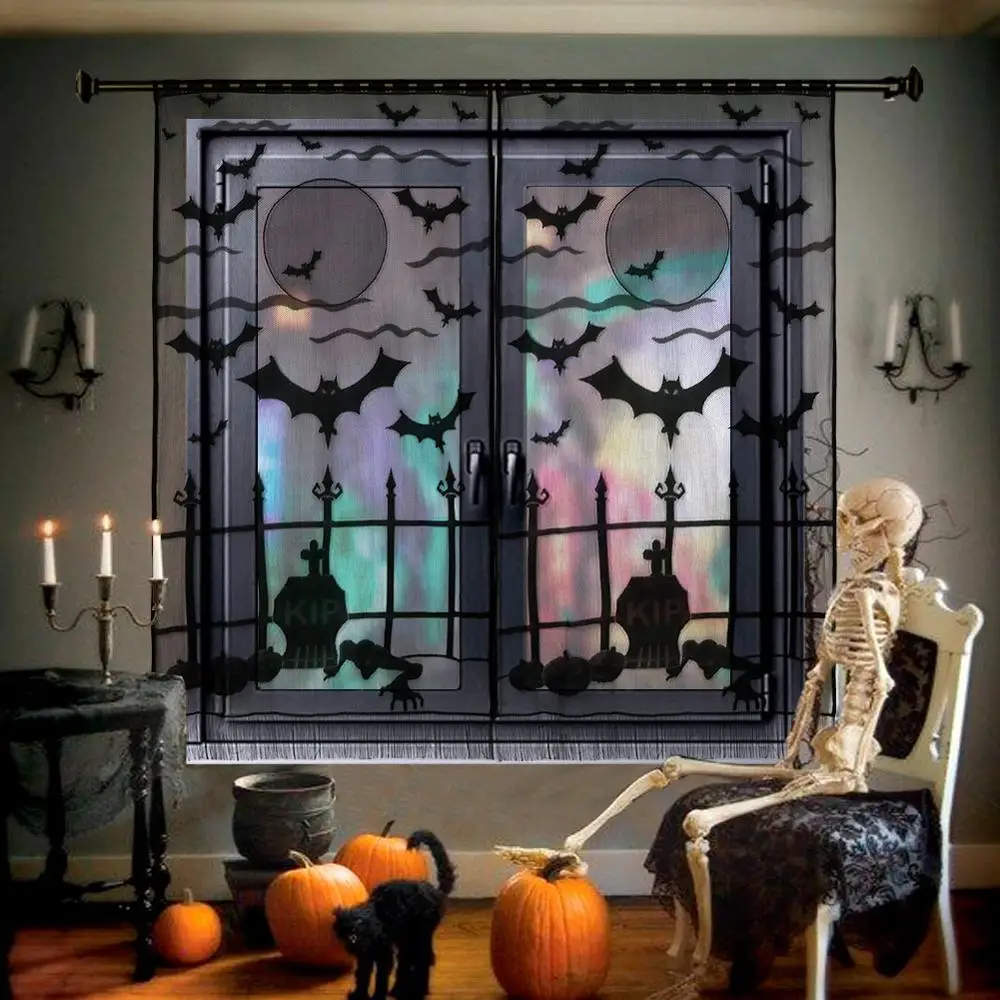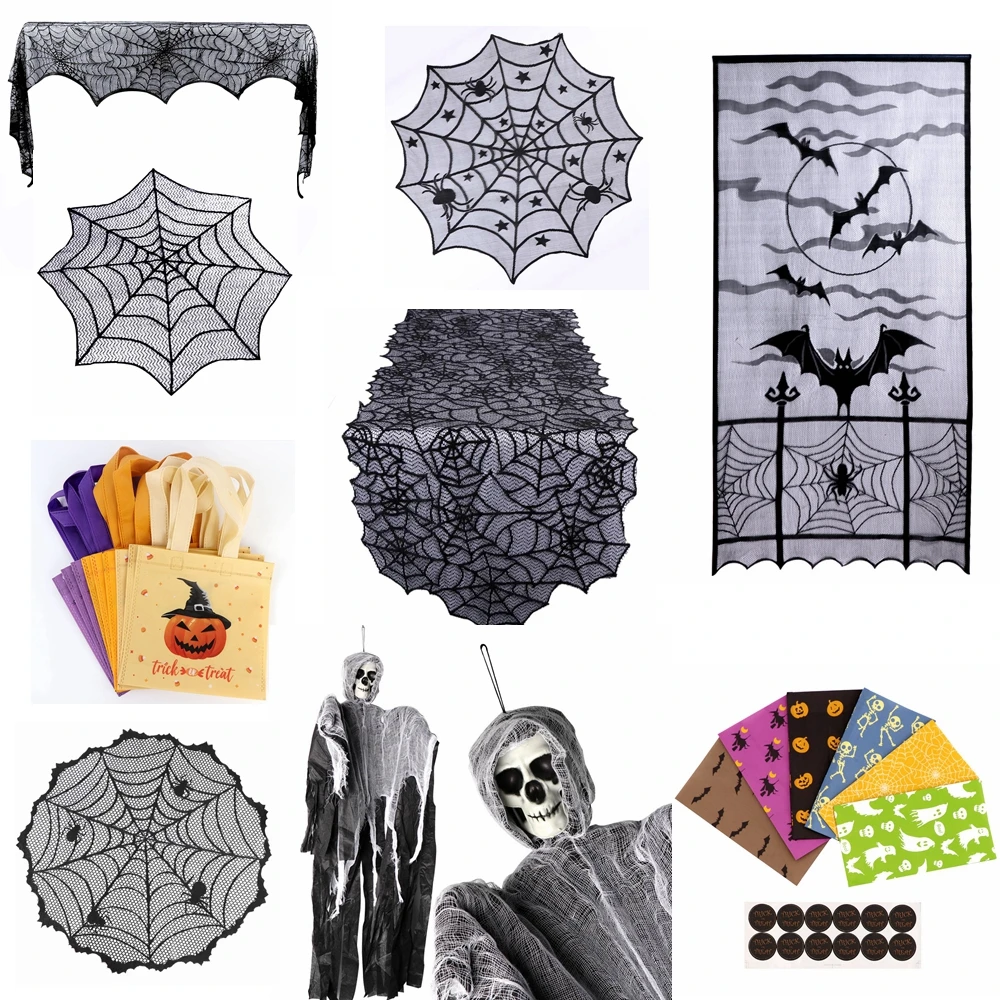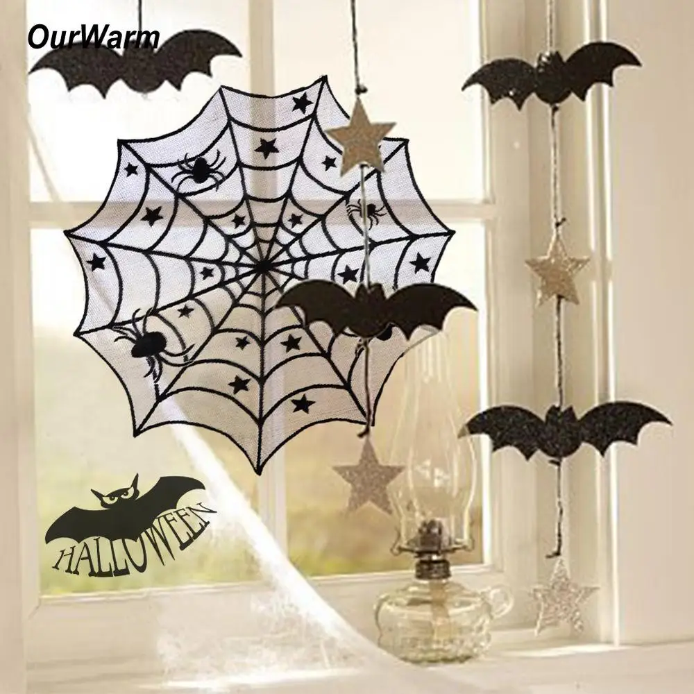 OurwarmВечерние черные кружевные тканевые скатерти для стола на Хэллоуин 100 см, чехлы для стола, подвесные окна, ужасы, украшения для дома на Хэллоуин
