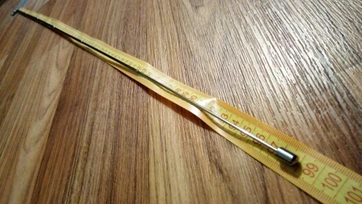 антенну получил, пришла за месяц. описанию соответствует, полностью выпрямленная антенна в сложенном виде составляет 22 см, полностью раздвинутая 100 см. качество хорошее, товар голодный, на магнитолу ещё не установил, но к покупке рекомендую. всем удачных покупок.