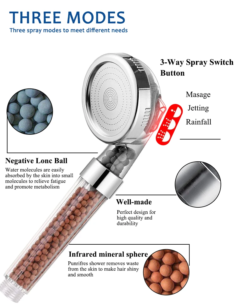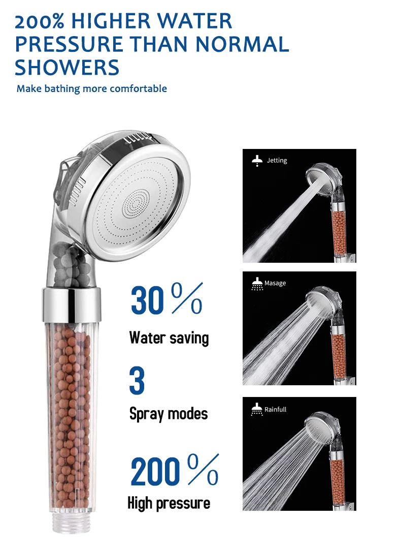 ZhangJi 3 режима душ для ванной Регулируемый струйный душ насадка для душа высокое давление экономия воды Ванная комната Анионный фильтр насадка для душа Спа