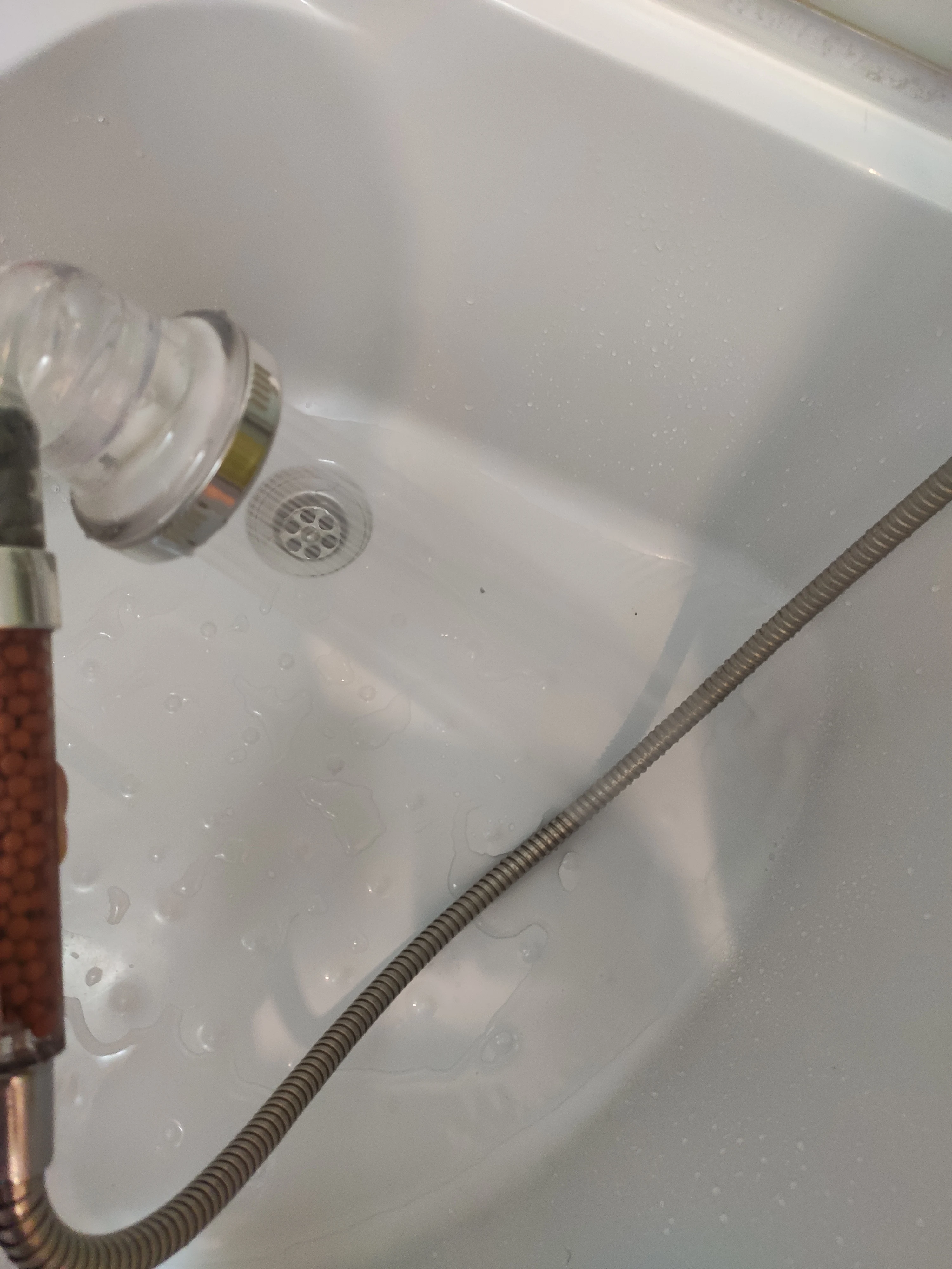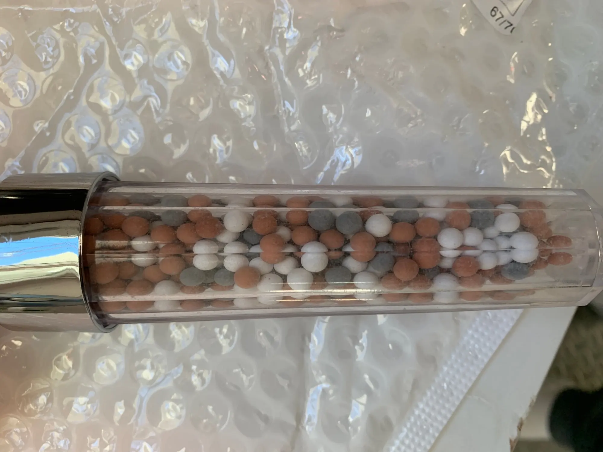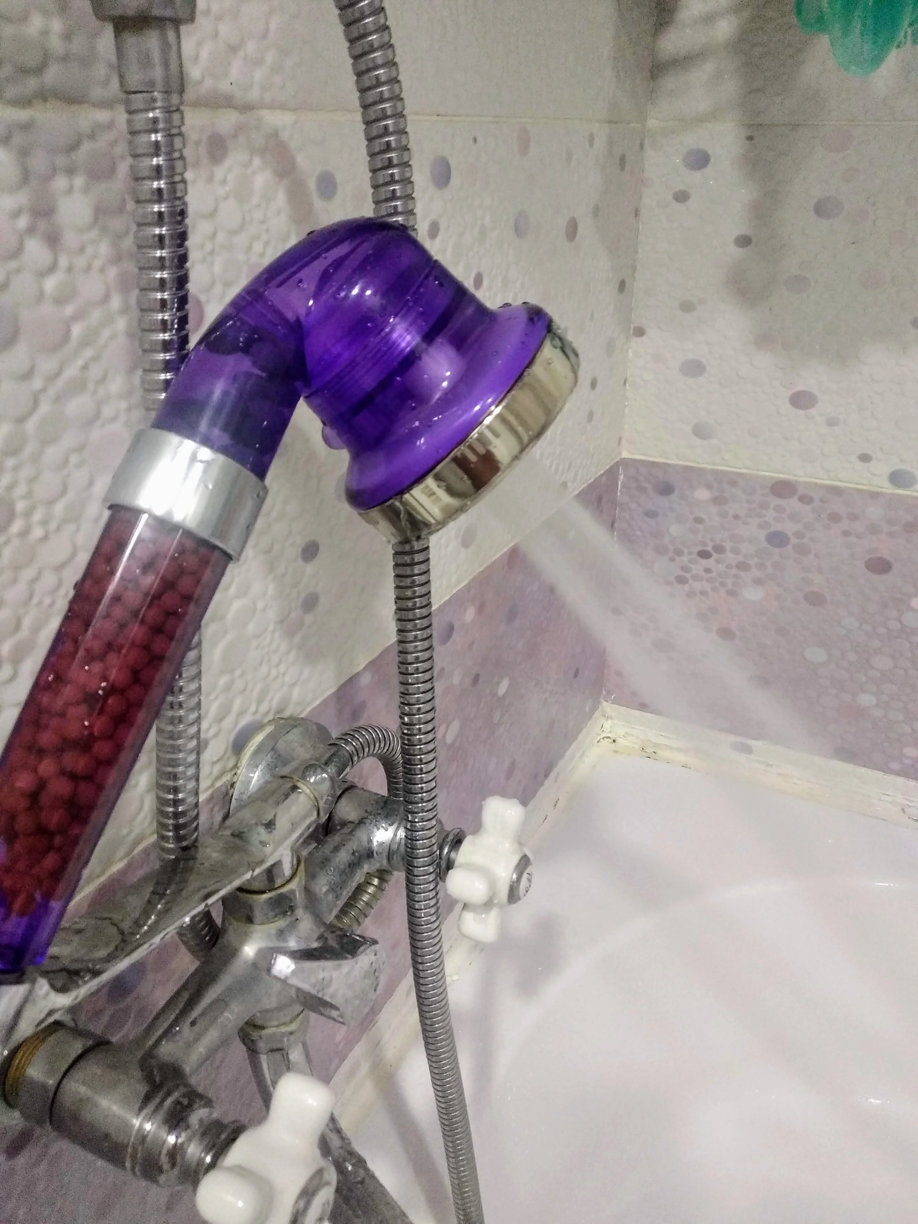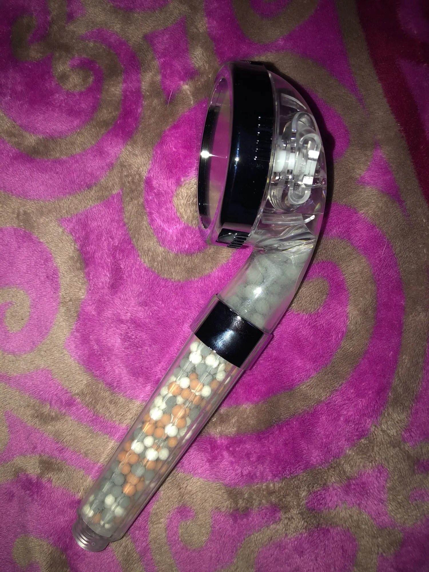 Я только что получил насадку для душа и она идеальна. Пластик кажется немного хрупким, я думаю, что он может легко тормозить. Я купил это из-за плохой воды здесь, в Германии. Я также купил один душевой фильтр (вы можете увидеть его на фото), поэтому я надеюсь, что с этим комбо вода улучшится :) очень хороший продавец, я настоятельно рекомендую!