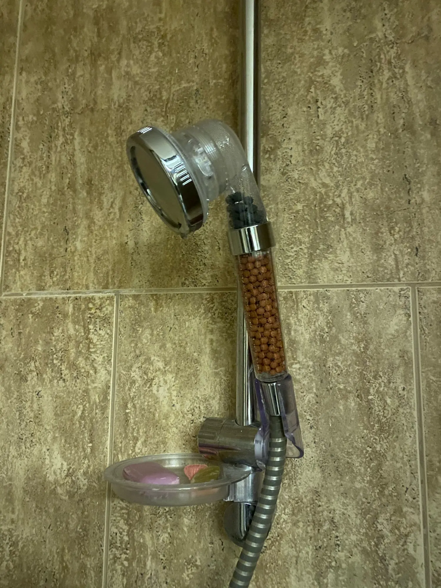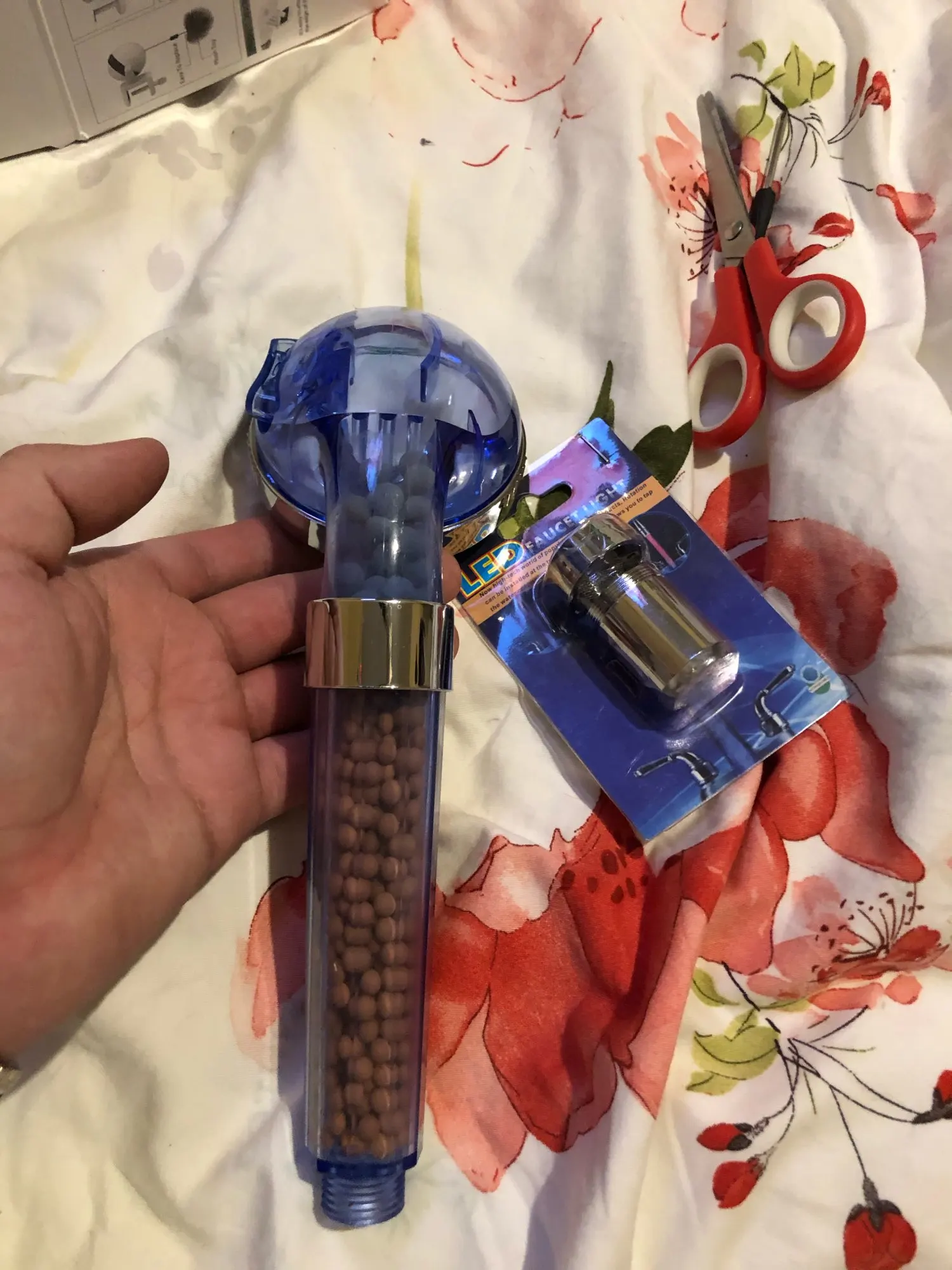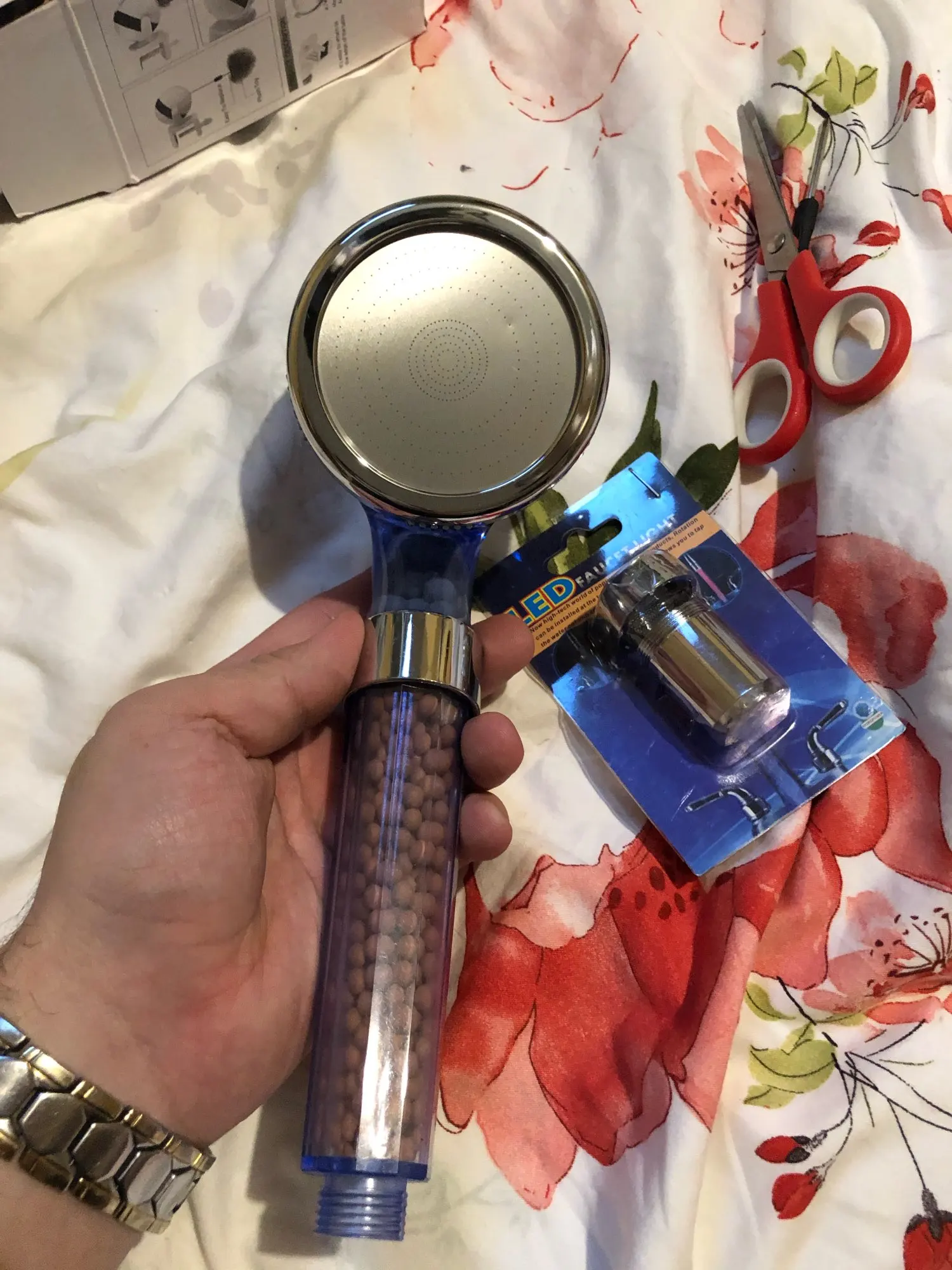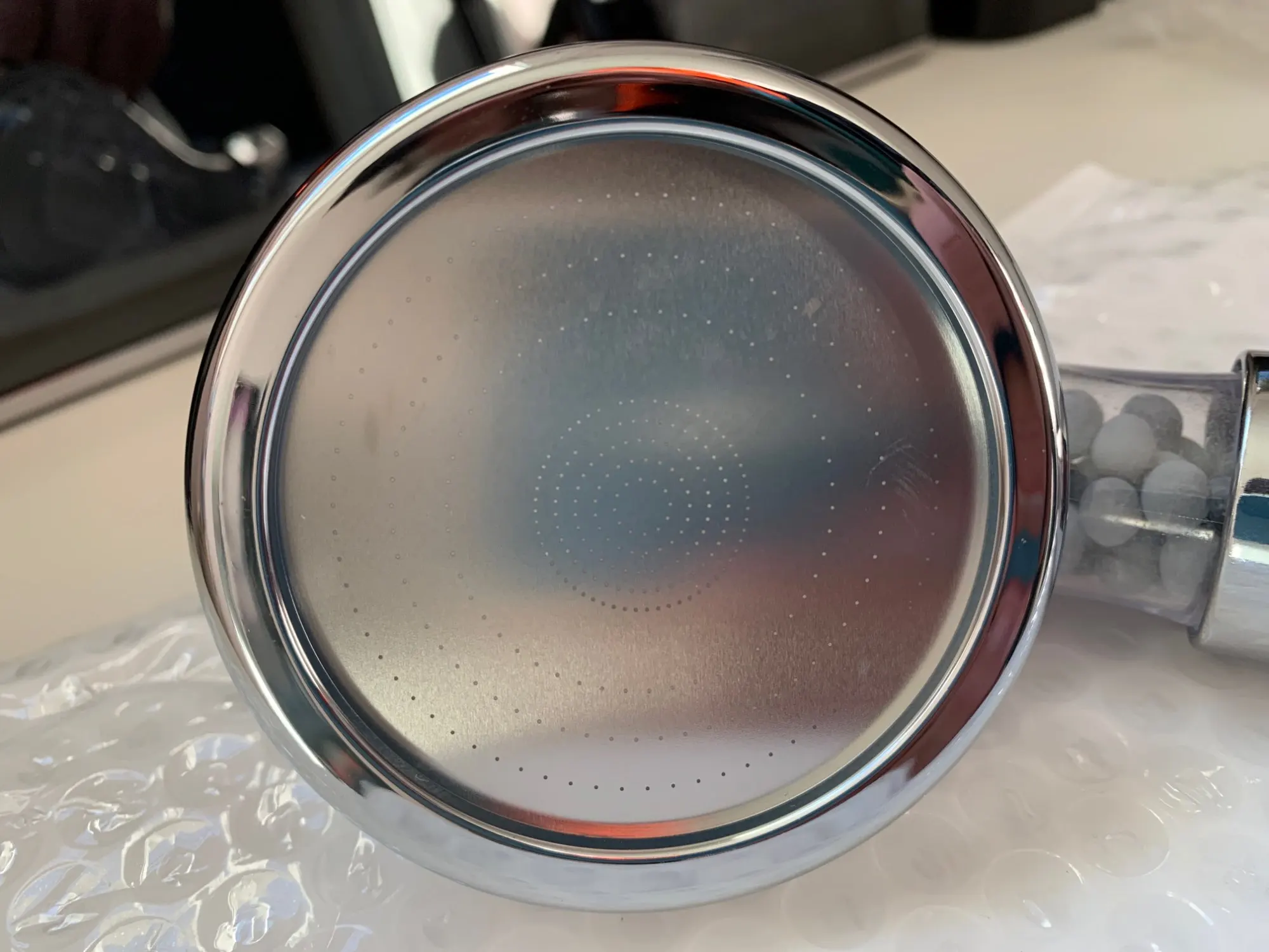 Я только что получил насадку для душа и она идеальна. Пластик кажется немного хрупким, я думаю, что он может легко тормозить. Я купил это из-за плохой воды здесь, в Германии. Я также купил один душевой фильтр (вы можете увидеть его на фото), поэтому я надеюсь, что с этим комбо вода улучшится :) очень хороший продавец, я настоятельно рекомендую!