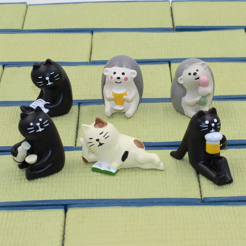 Decole Черный кот медведь, еж, миниатюрная фигурка Япония Zakka животное домашнее украшение Сад Смола ремесло игрушки украшения для бонсай