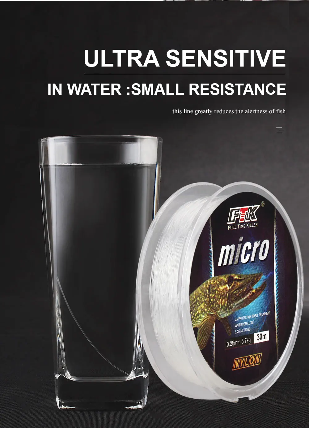 Нейлоновая леска для подледной рыбалки, 30 м, 2,9-1,3 анг. Фунт., 5,7-0,08 кг, диаметрмм, прозрачная, для ловли карпа, зимняя, для подледной рыбалки