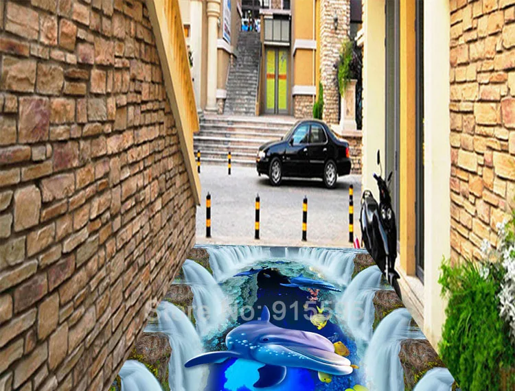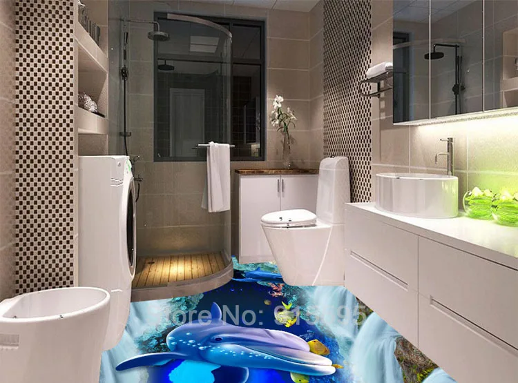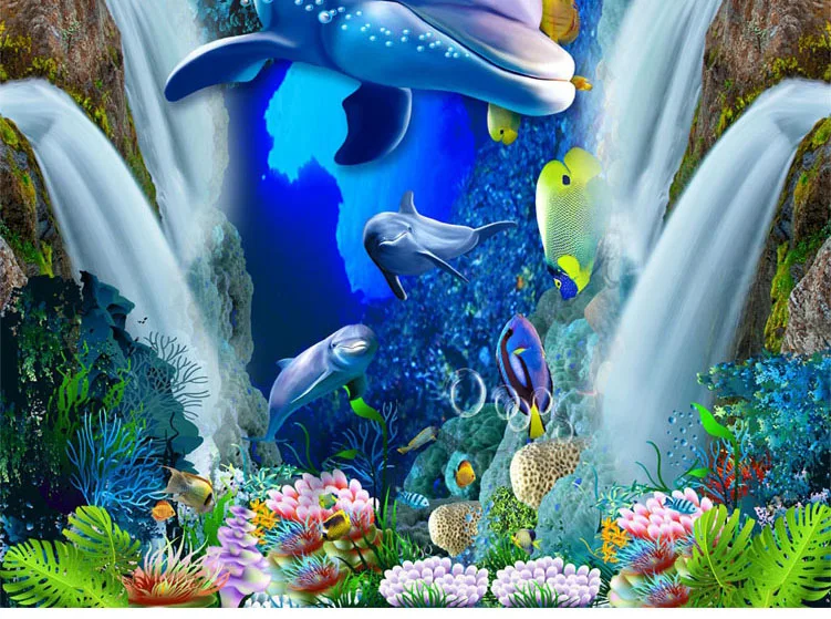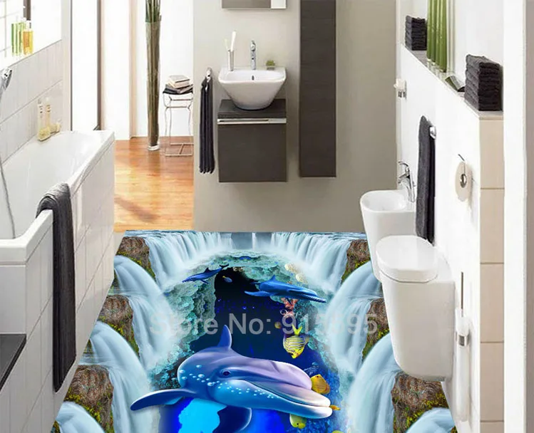 Настенные 3D обои на заказ, водопад, подводный мир, дельфин, 3D дорожка для ванной, напольная плитка, наклейки, Декор, ПВХ, водонепроницаемые