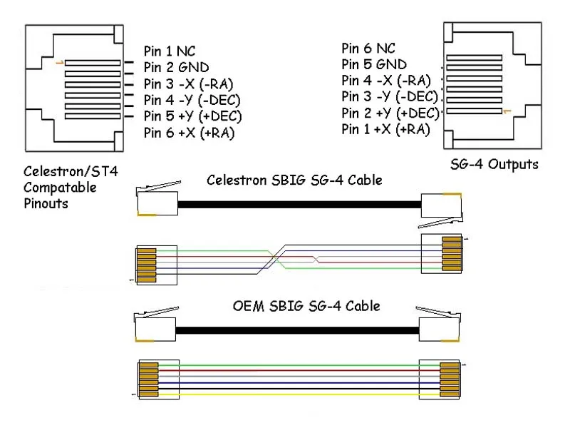 Совместимый кабель ST4, автоматический направляющий кабель, большой SG-4 кабель Celestron, автоматический направляющий кабель Celestron, кабель RJ11 RJ12