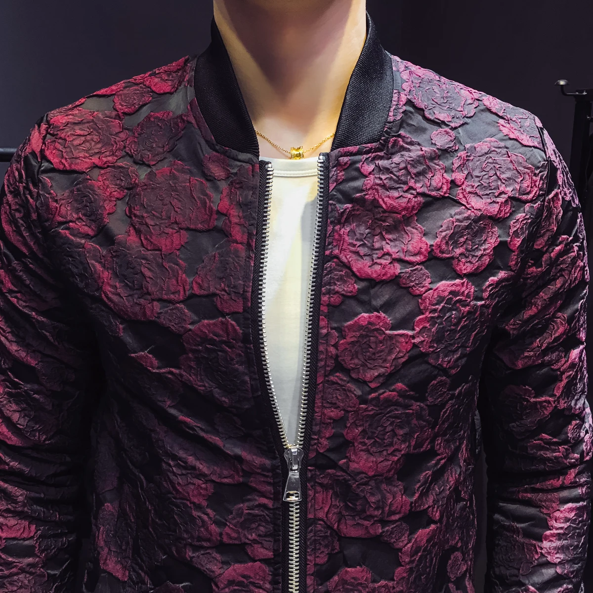 2017 Autumn New Jacquard Bomber Jackets Men Luxury Wine Red Black Grey Party Jacket Outfit Club Bar Coat Men Casaca Hombre 4XL