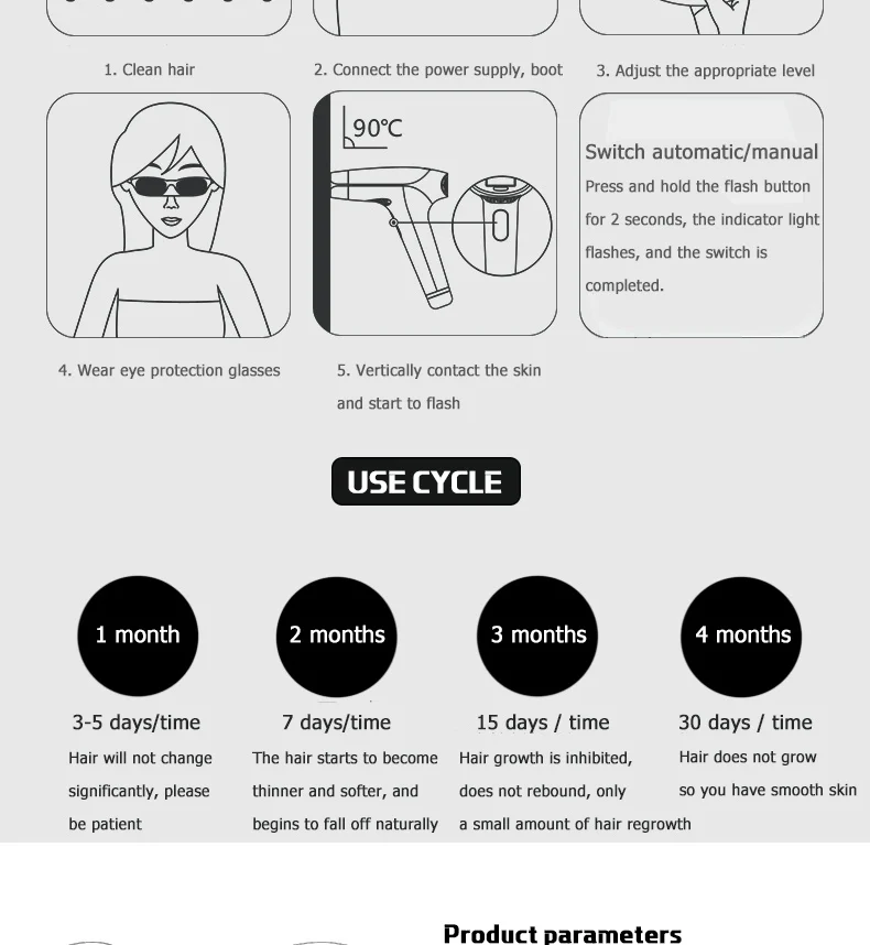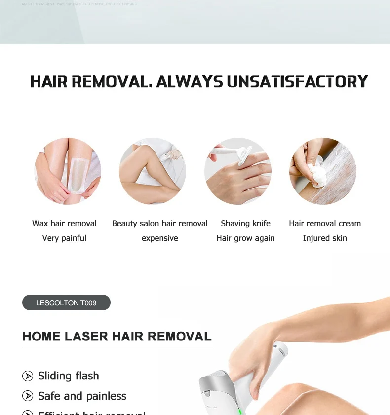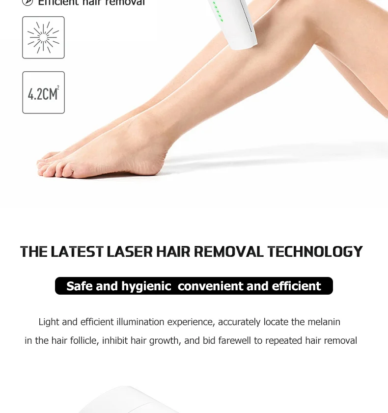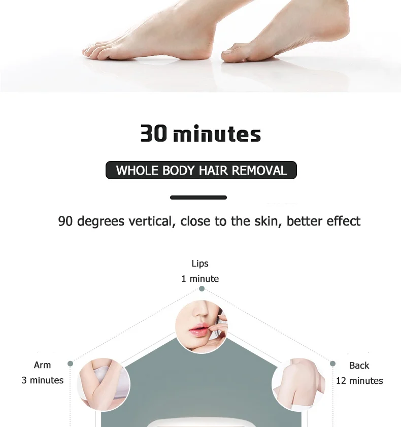 6. Быстрая и Большая область обработки: 4,2 квадратный см размер места не слишком большой или не слишком маленький для любой кривой тела, высокая эффективность и быстрая скорость, которая занимает всего несколько минут, чтобы удалить перекрещивающиеся волосы, которые трудно для традиционного метода удаления волос