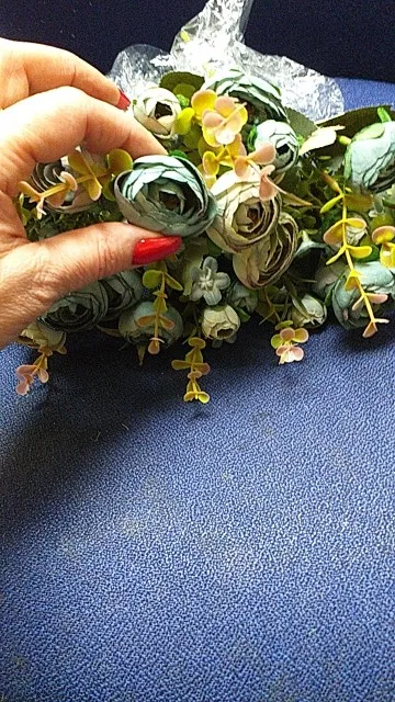 Цветочный букетик, достаточно приличное качество. Цветы в диаметре 2,5 см. Жаль, что практически никто из продавцов не указал размер (минус). Товар пришёл быстро, пару недель. Немного нужно распушить для дальнейшего использования.