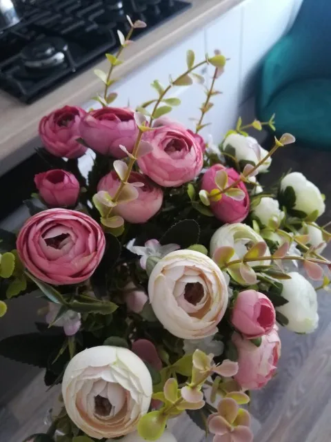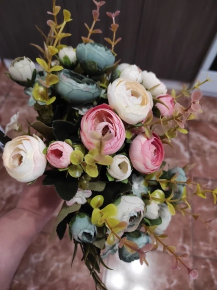 Красивые цветы, смотрятся как настоящие. Запах отсутствует. Цвет насыщенный как на фото продавца. Доставка быстрая - 16 дней. Рекомендую