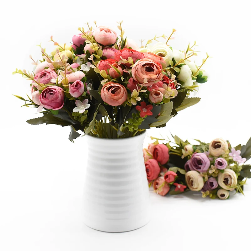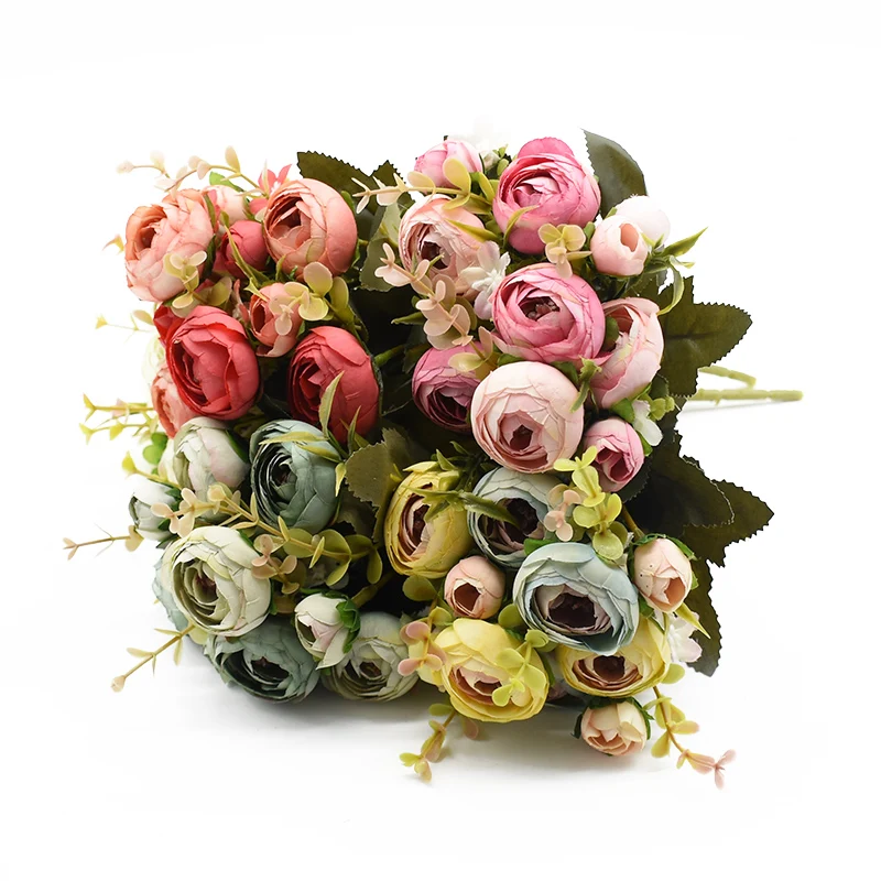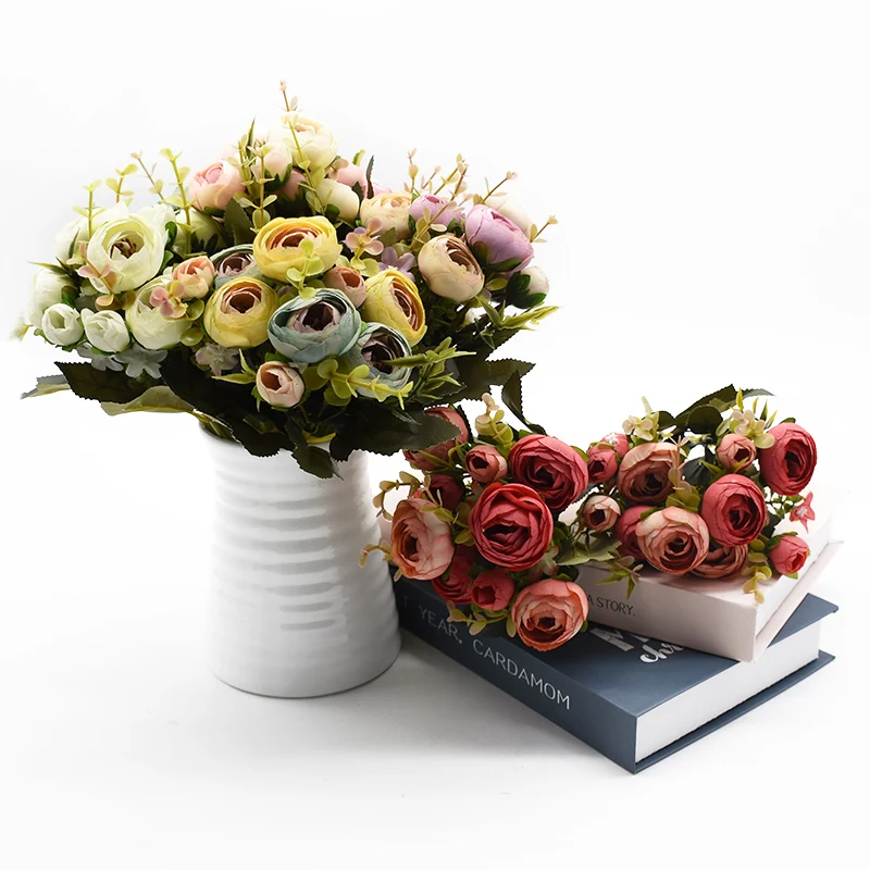 Искусственные цветы, шелковые Чайные розы, букет невесты для рождества, дома, свадьбы, нового года