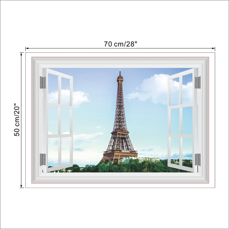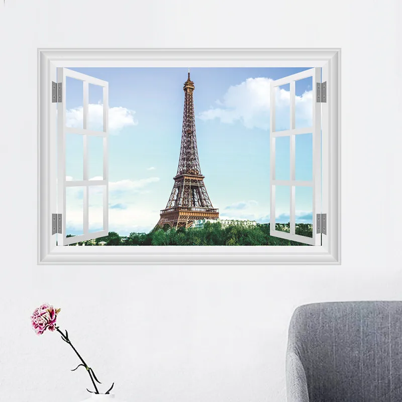 Парижская башня 3d поддельные наклейки на окна стены гостиной спальни украшения городской пейзаж Фреска Искусство пейзаж Diy домашние наклейки