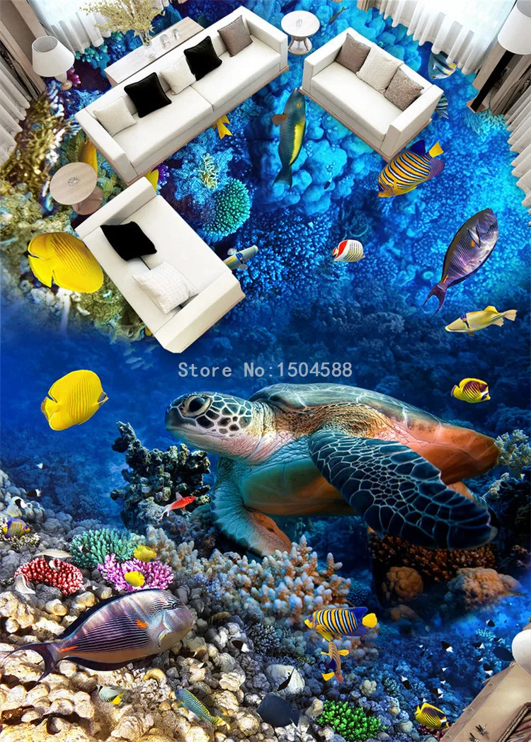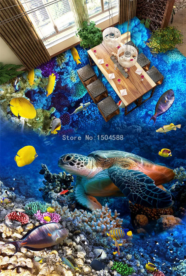 Пользовательская фотография настенная бумага 3D Черепашки Тропические рыбы Коралл 3D напольная плитка картины фрески для детской спальни гостиной виниловая настенная бумага s