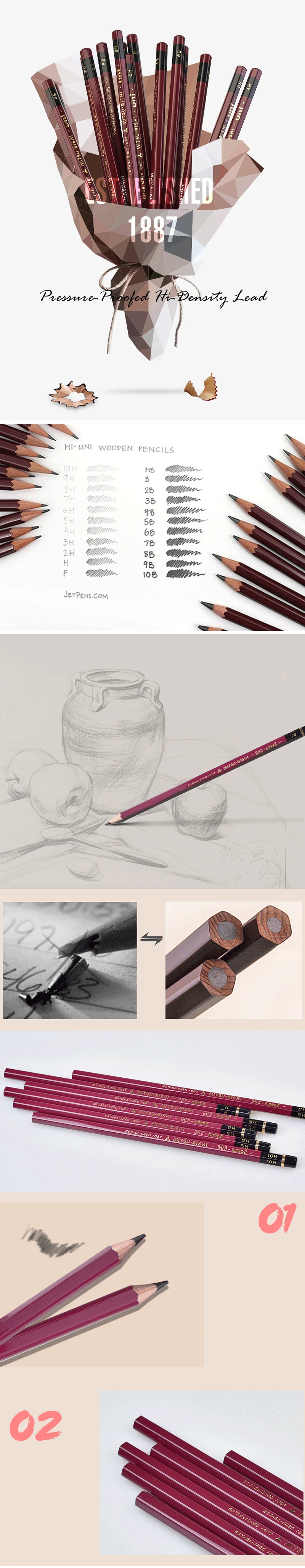 Карандаш для письма Mitsubishi Uni HI-UNI Series, студенческий карандаш для письма, 22 варианта, 2 шт.Лот, оптовая продажа