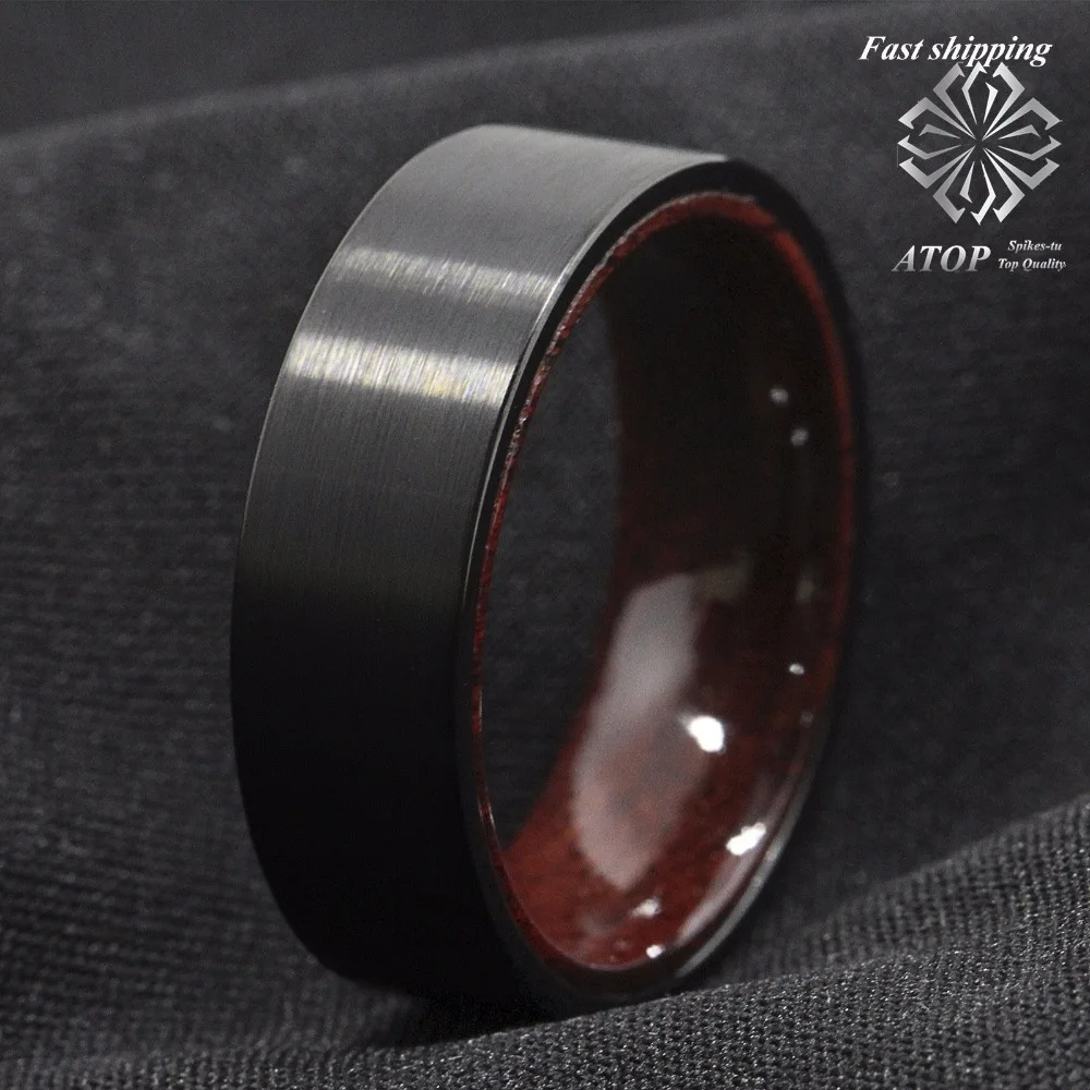 8 мм черный матовый Вольфрам красный инкрустация из сандалового дерева обручальное кольцо Мужские украшения Бесплатная доставка