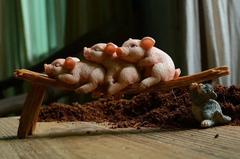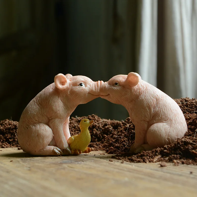 Милая статуя свиньи, фигурки животных, миниатюрная сказочная садовая декорация, аксессуары для украшения дома, полимерные поделки, настольное украшение