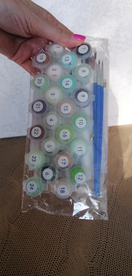 почитала отзывы и после заказа попросила продавца упаковать картину так, чтобы она не помялась. он обернул её на полиэтиленовый валик, и, к моему удивлению, пришла она в отличном состоянии. краски целы, кисти тоже. по Китаю каталась картина долго, около месяца. попав в Россию приехала в Саратов за 2 дня, трек отслеживался. единственный минус - цифры достаточно жирные и крупные. может, конечно, это я слишком тонким слоем крашу, но светлые краски закрашивают их только со 2-3 раза. покупала у другого продавца, там цифры меньше размером и не такие яркие, хотя картина в тёмных тонах. здесь наоборот. посмотрим хватит ли краски на всю картину. как закончу, дополню отзыв.