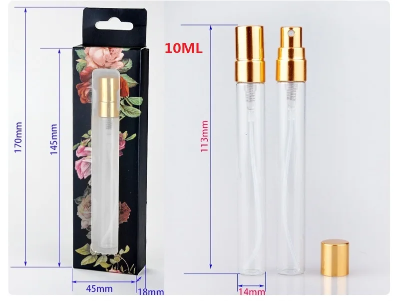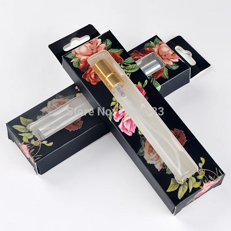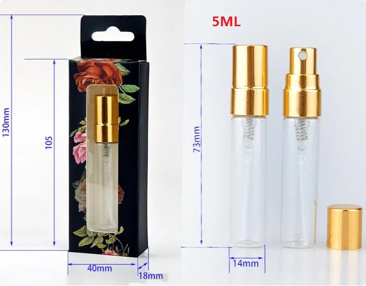 Стеклянный флакон для парфюма, 50 шт.лот, 5 мл, 10 мл, многоразовый флакон с распылителем, упаковочная коробка для косметических образцов