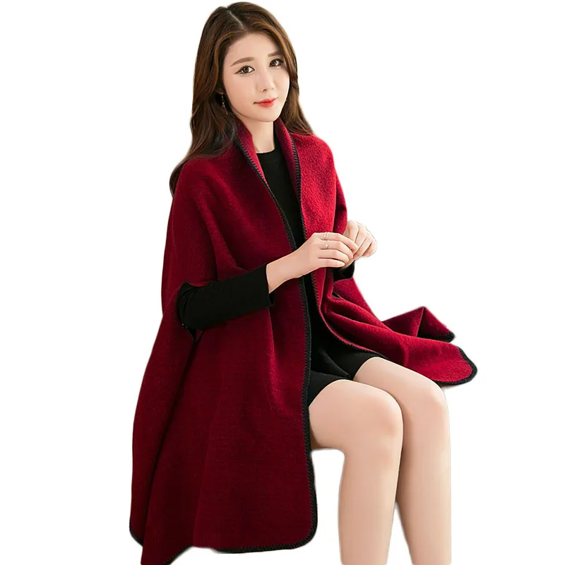 Зимние женские пончо платки и искажать толстые теплые накидки из искусственного кашемира со деловые красные накидки в западном стиле большой пашмины женский платок