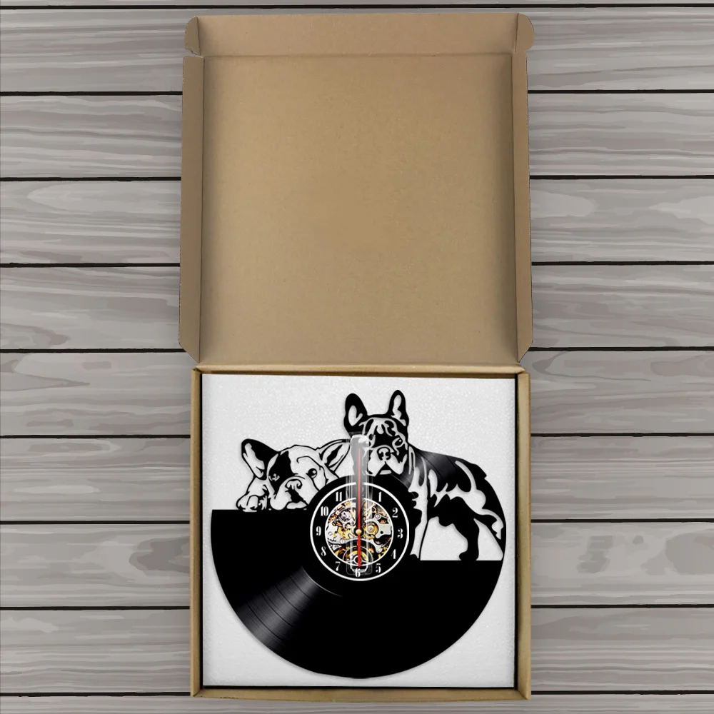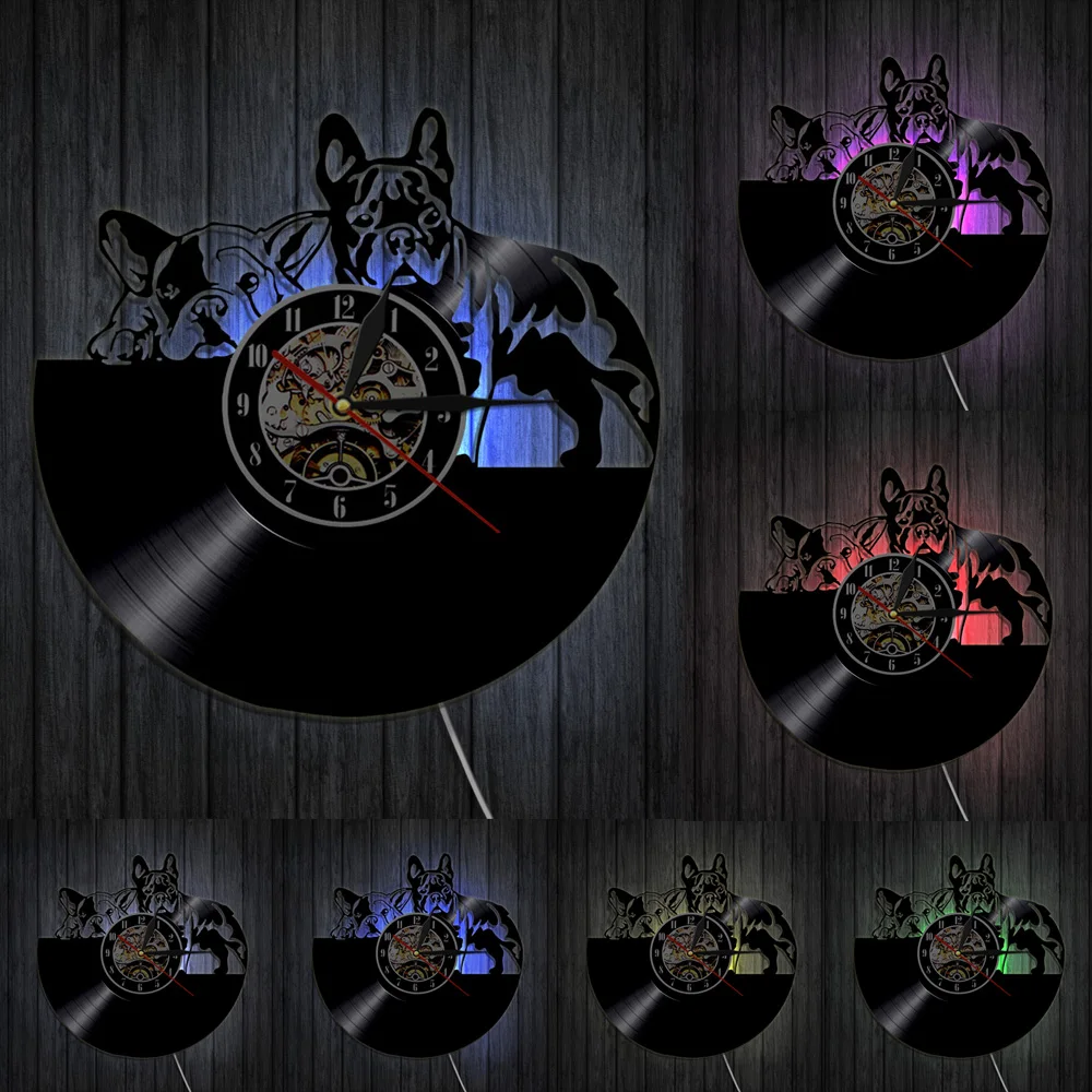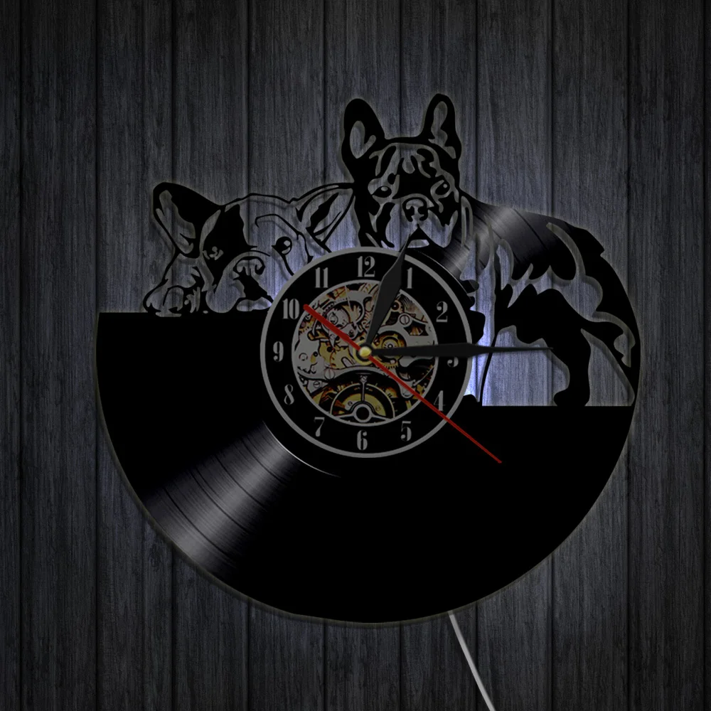 3D настенные часы с изображением французского бульдога, современный дизайн, украшение дома, виниловые часы с записью, Настенный декор для детской комнаты