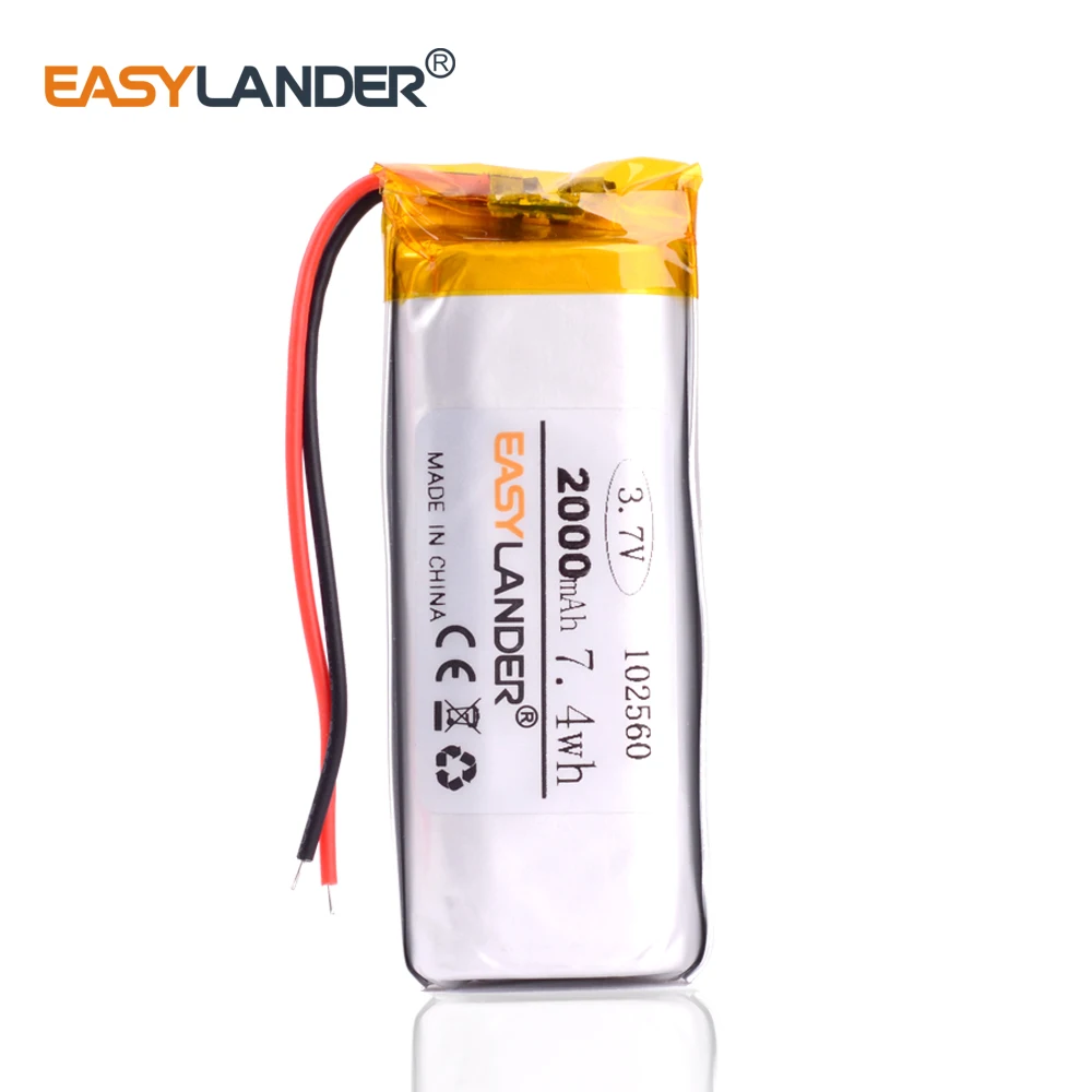 3 шт.лот 3,7 в литий-ионный полимерный аккумулятор 102560 2000 мА ч для переговорного устройства GPS автомобиля запись данных в путешествии