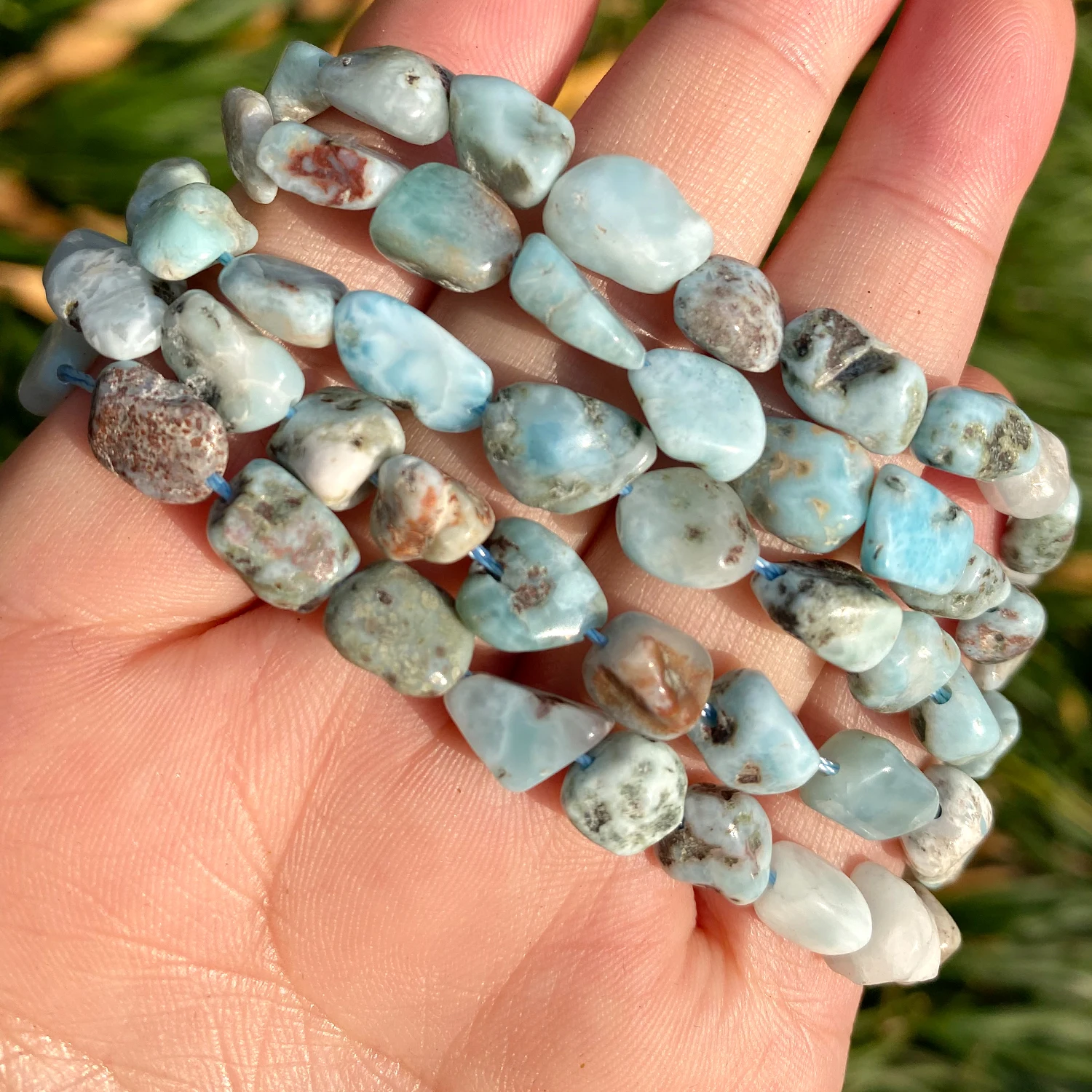 вот такой "ларимар" мне пришел особенно красив тот, на 2м фото. это не камни, а отходы, крошка. склеены материалом напоминающим жвачку с глиной. хотела помыть, намочила всю нитку, при снятии с нее -они начали разваливаться в руке. 3 фото. думала хоть 1, но должен быть камнем! но нет, самый хилый, но относительно чистенький (плоский, 1,5мм толщиной), при рассмотрении тоже оказался не в жилках, а клееный (фоток много выложить нельзя, поэтому кратко) и тоже развалился. выбросила в мусор ВСЕ. вопрос, стоят они 350р, если вот такую нитку (5 фото) я взяла за 620? причем это реальнo камни! p.s сейчас цена подрoсла до 700, нo тем не менее). хотела поставить 5*,чтoб напечатали, нo рука не пoднялась