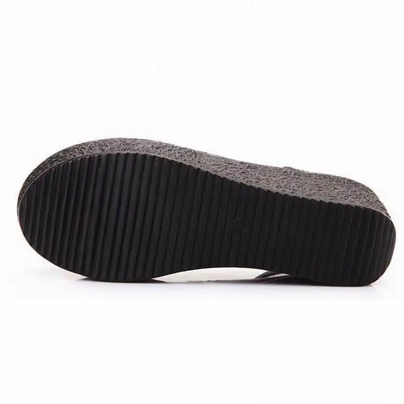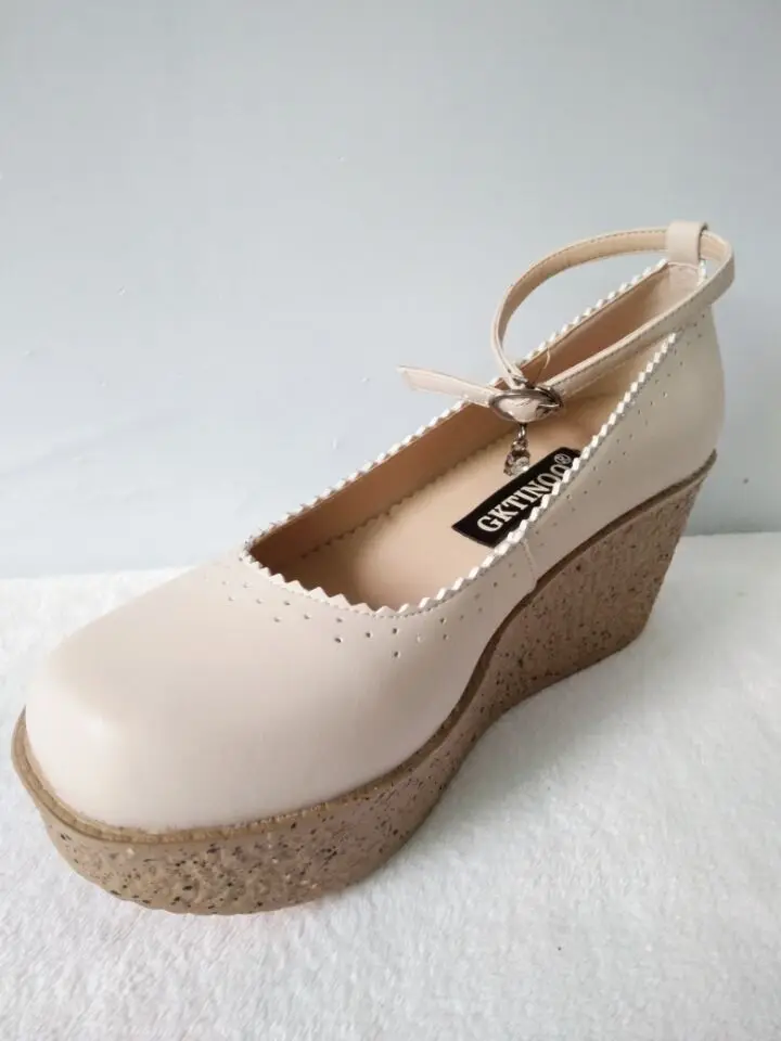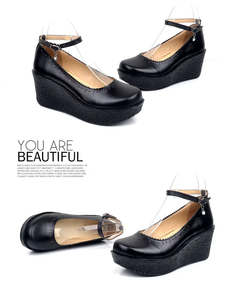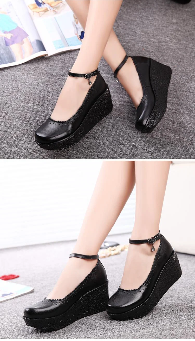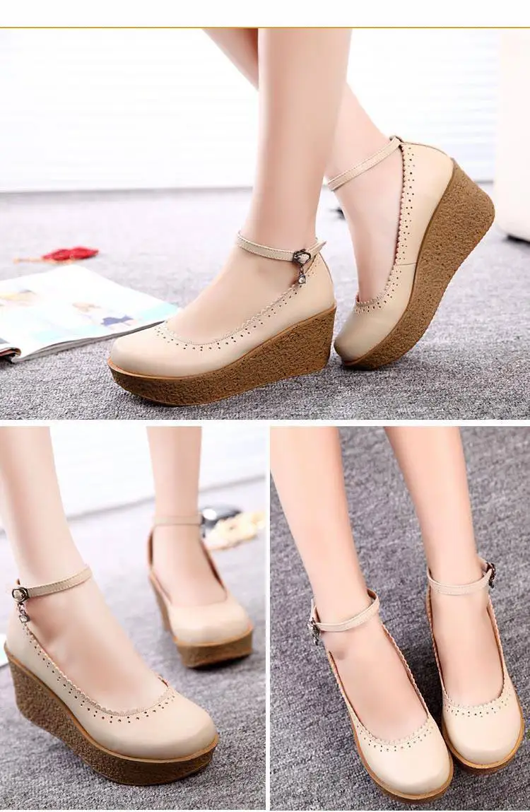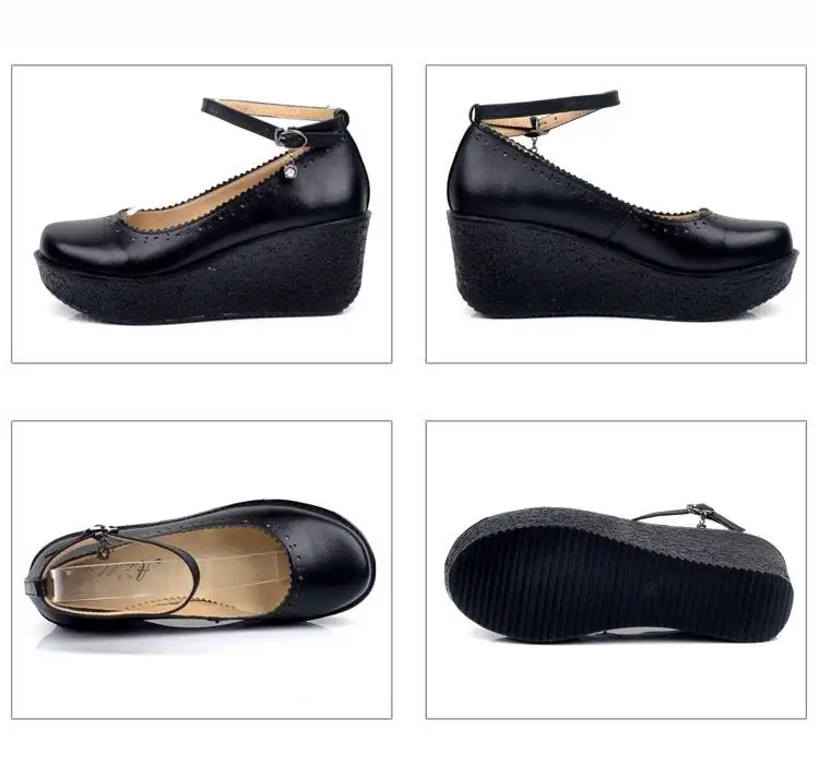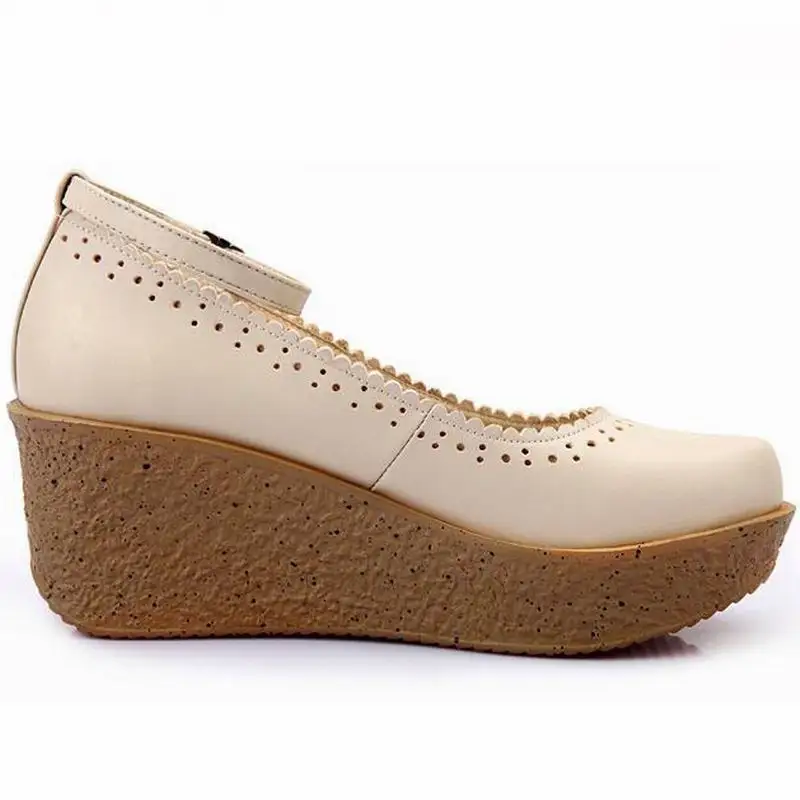 Женская обувь на платформе; Женская обувь из натуральной кожи; Удобные дышащие туфли-лодочки на танкетке; Цвет черный, бежевый; Размера плюс 34-42
