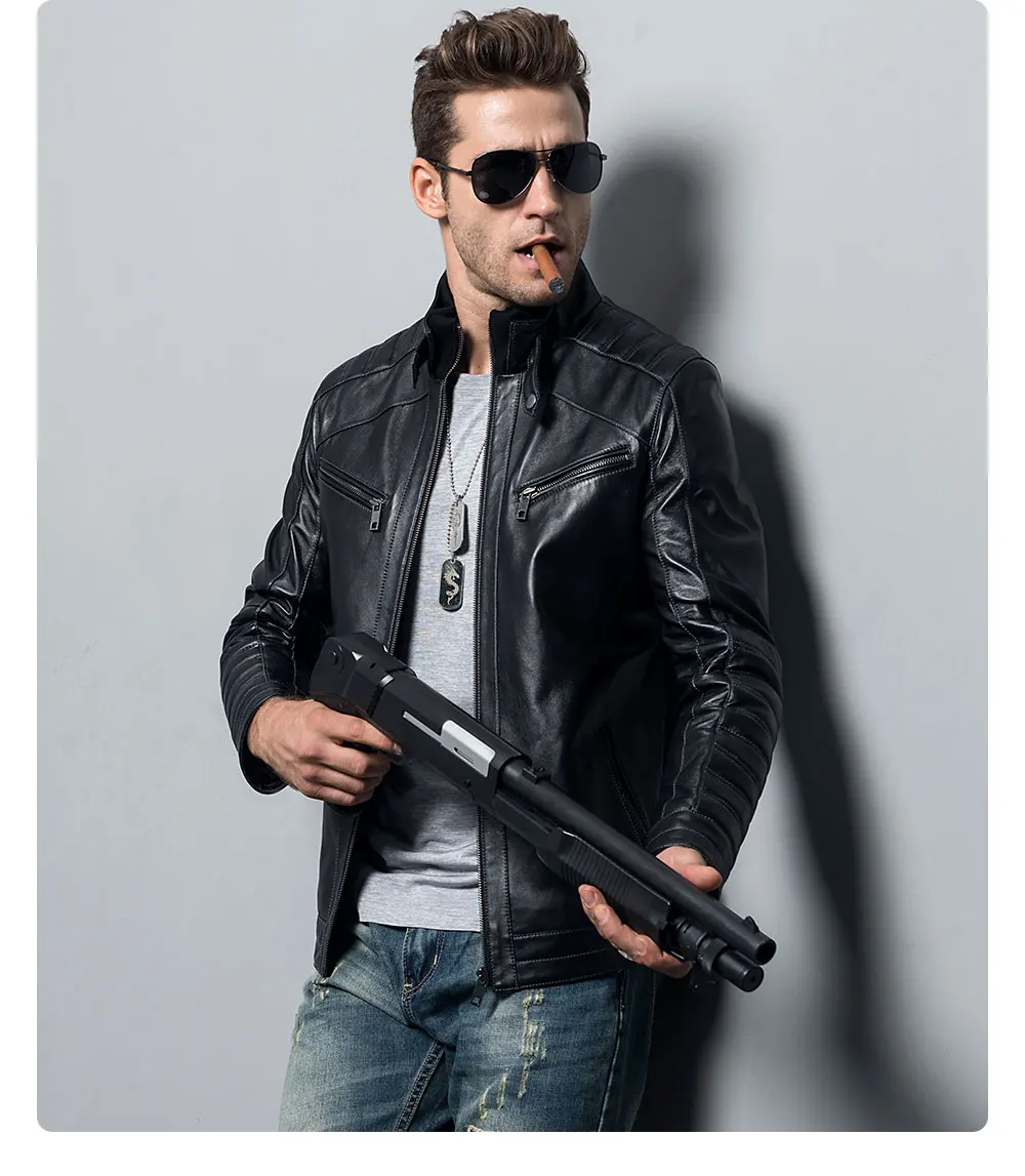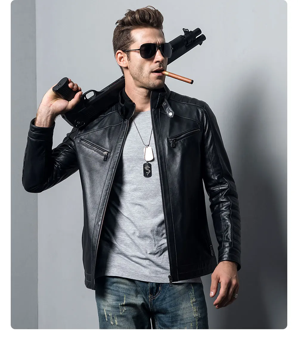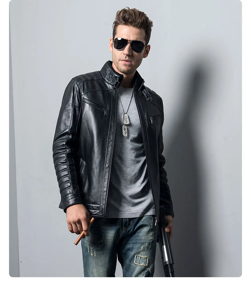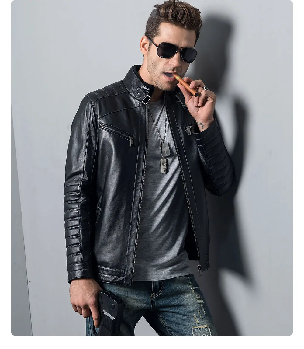 Kожаная куртка мужская из настоящей овечьей шкуры, мотоциклетное пальто из шкуры ягненка, куртка-бомбер из натуральной кожи