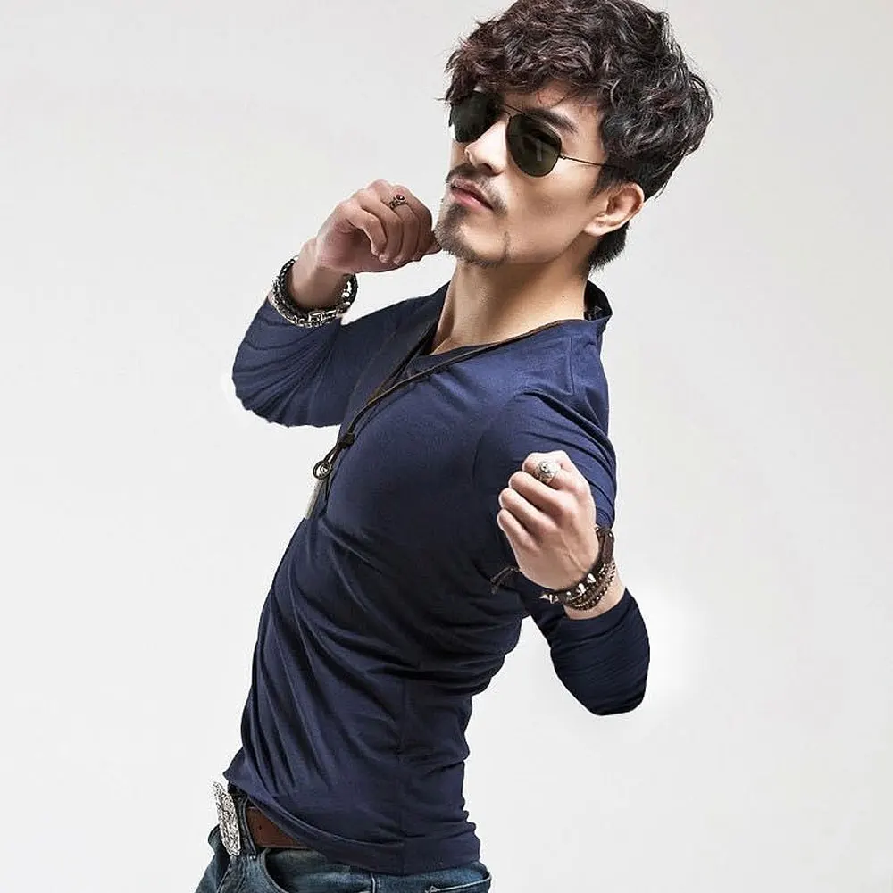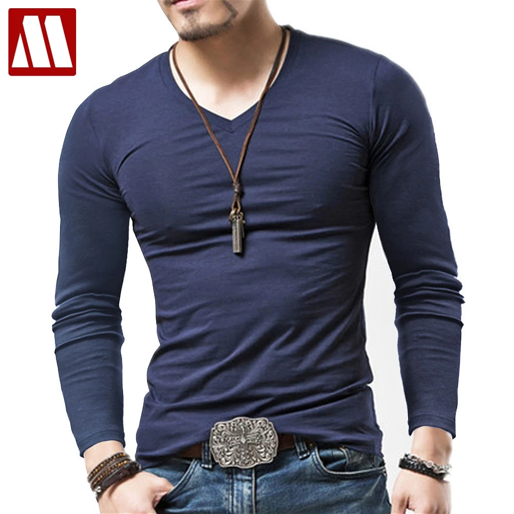 Мужские топы, футболки, новинка 2021, летняя футболка с длинным рукавом и v-образным вырезом, мужские модные тренды, Однотонная футболка для фитнеса, футболки размера плюс 5XL