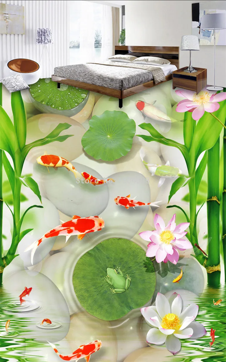 Пользовательские фото обои в китайском стиле Золотая рыбка галька бамбуковая лягушка и Лотос 3D напольная плитка настенная бумага Гостиная ПВХ наклейка