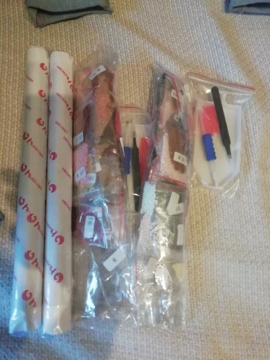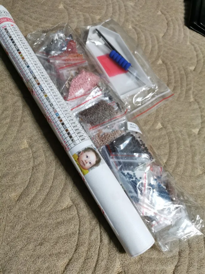 Доставлено быстро! Полотно на пенопластовым валике, но чуть помялось, выровняю. Один из пакетиков с кристаллами не закрыто, высыпались, хорошо что один цвет, не смешались, собрал. Пока не собирал, но не первый раз здесь заказываю, качество хорошее, запас кристаллов большой. Рекомендую продавца!