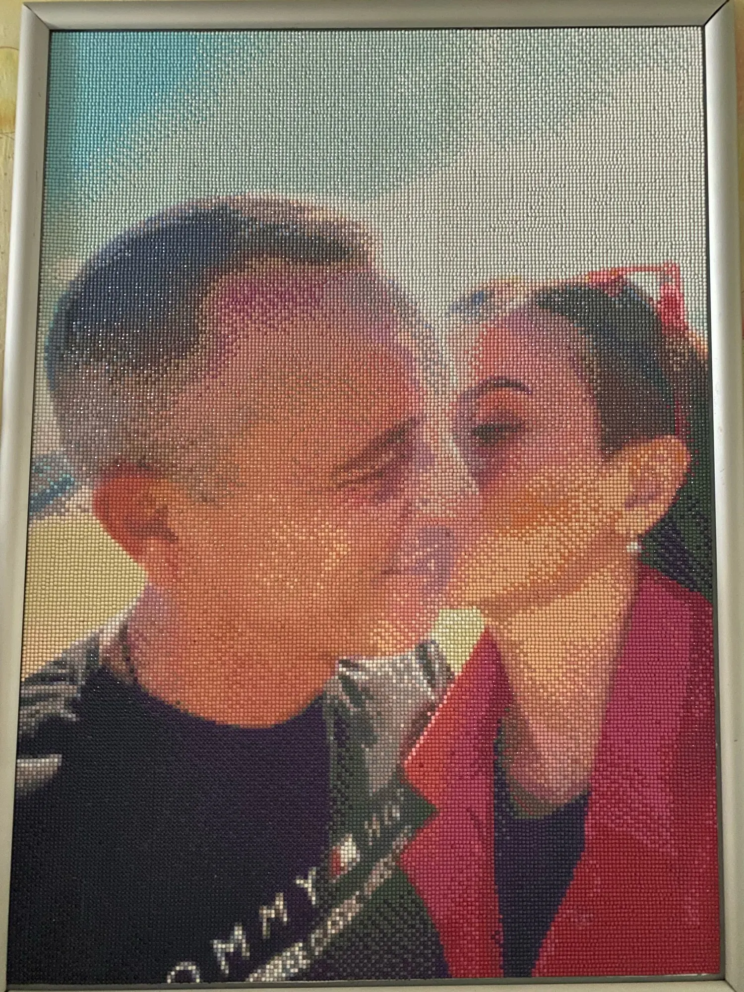 Полностью красивый принт, который еще не закончился, но на самом деле топ продаж, у нас была порвана фотография меня с моим поздним папой, продавец консультируется аккуратно или картинка красивая, выходит, и стразы все аккуратно в мешках