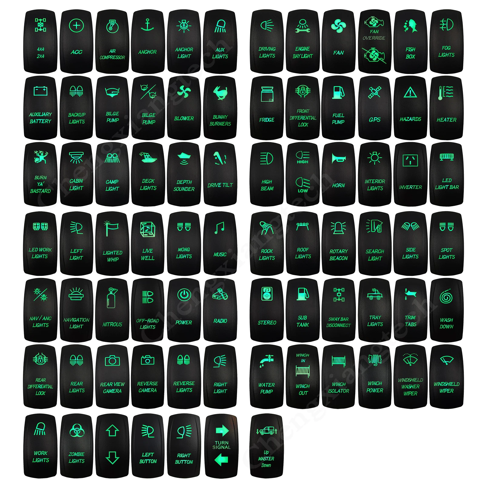 Водонепроницаемая IP68 светильник Панель 12 В24 В для лодочного автомобиля, ВКЛ.ВЫКЛ., зеленый светодиодный клавишный переключатель SPST DPDT для ARBCARLINGNARVA4x4, аксессуары
