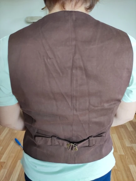 жилет соответствует описанию. исполнение качественное. Спинка хлопковая, есть хлястик для регулировки ширины. Выглядит достойно, всё как я хотела :). Стоит своих денег. Рекомендую