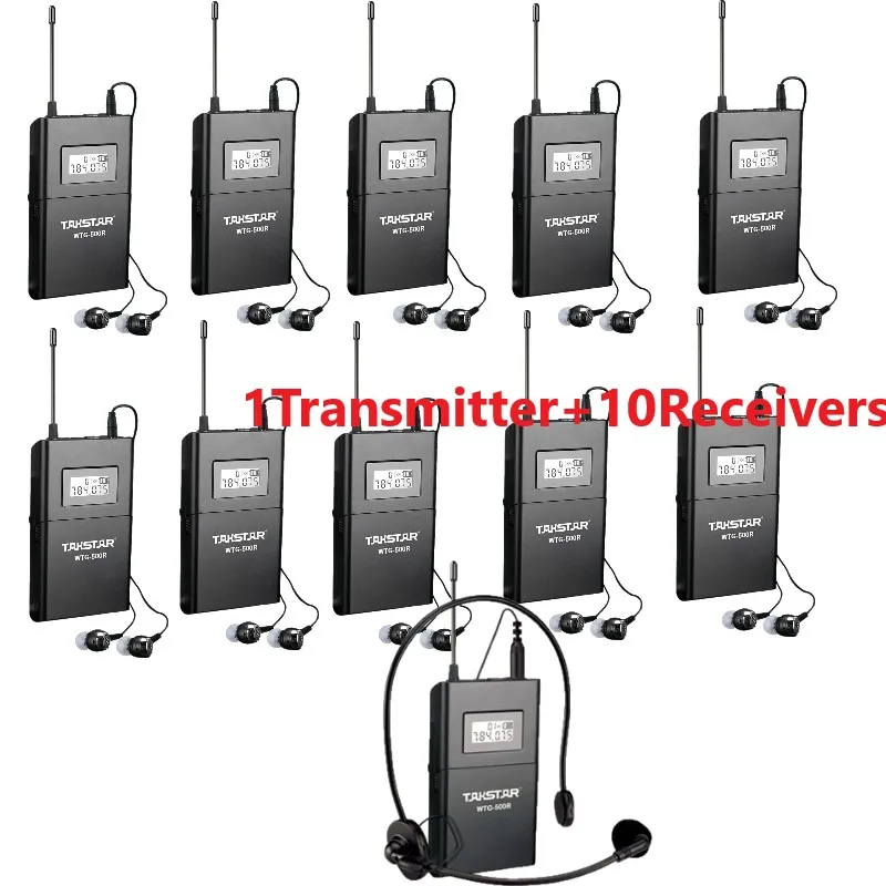 Высокое качество Takstar WTG-500 UHF PLL Беспроводная система гида тура голосовое устройство учебные наушники 1 шт. передатчик + 10 шт. приемник + 1 шт. микрофон + 10 шт. наушники Бесплатная доставка