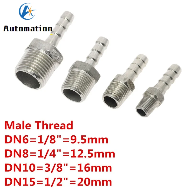 Хвостовик шланга с наружной резьбой BSPT, переходник из нержавеющей стали SS304, 6, 8, 10, 12 мм, 18, 14, 12 дюйма