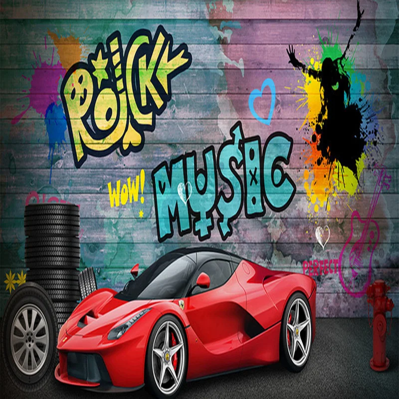 Настенные 3D обои любого размера под заказ, Красная Спортивная машинка, граффити, ретро, кафе, ресторан, декор для стен, фреска