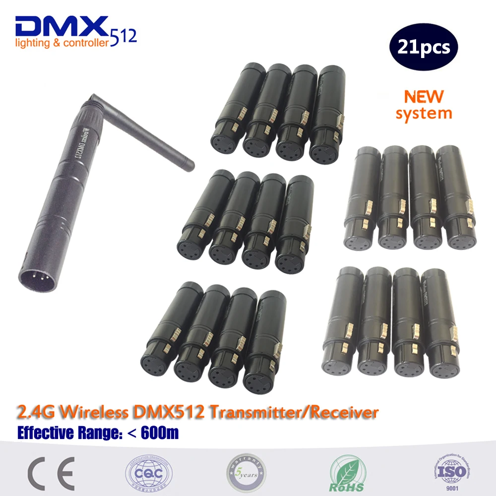 DHL бесплатно 21 шт.лот 5-контактный XLR 2,4G Wifi DMX контроллер освещения беспроводной DMX512 передатчик и приемник для сцены PAR вечеринки свет